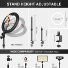 Computer Streaming Ring Light with Desk Mount Stand for Video Conferencing Wide Application: If you do live streaming on Twitch/Youtube/Tiktok, but always find yourself struggling to find the perfect desk lighting.Evershop 12'' computer light with clamp stand will perfectly solve your problems.This selfie ring light performance well on video conferencing,zoom meeting/calls,video recording,broadcasting,and provides lights for photography, makeup, selfie and etc. C Clamp Stand for Space Saving and 22.7" Tall Desk Stand:The clamp mount is adjustable for fitting kinds of flat desktop with MAX THICKNESS of 2.1 inches.The mount stand is much higher than other desk stand,which could be extended from 13.5 in to 22.7 in.No worries your ring light will be hided by computer monitor any more.The stand is made of high quality aluminum alloy which ensures a long time use without getting rusty and preventing deformation.With 1/4" thread ball head,the stand is great for supporting ring light, camera, cell phone, video light, webcam etc. 12'' Large Desktop Ring Light with 200 Eye-friendly LED Bulbs:Compared to other small-size ring light, Evershop 12'' circle light is much bigger and powerful, providing more light areas. Evershop circle light is made of 200 full spectrum beads, providing brighter and softer light, reducing flicker and shadow, avoiding eye fatigue caused by flickering light and harsh glare effectively. Dimmable Ring Light and USB Powered:Featuring 3 light colors (warm, natural, white) and 10 brightness levels in each color, ensuring you can get a proper brightness whether in evening or daytime, darkness or brightness, and in any light condition. The light works with most devices that support USB port, like laptop, PC, power bank, USB charger, AC adapter etc. To get a better performance, an adapter of 5V/2A or above is recommended. What You Get:1*12 inch ring light; 1* C Clamp stand(height adjustable from 13.5'' to 22.7''); 1*phone holder( fits most smartphones with width of 2.35 to 3.35''); 1*1/4"screws ball head; 1* user mannual; 24 hours customer service and 1 year warranty. If you are not satisfied with the selfie ring light or any further issues, you could contact Evershop anytime. ------------------------------------------------------------------------------------------ Shipping Policy: Domestic lower 48 states shipping is free and expedited. Shipping is also free to the rest US states and US Protectorates including Puerto Rico, Alaska, Hawaii, APO/FPO, but delivery times are longer than usual. If you need your order by a specific date please contact us before you make the purchase for a delivery estimate. ------------------------------------------------------------------------------------------ Return Policy: Your satisfaction is guaranteed! If for any reason you are unhappy with your item, just return it within 30 days for a full refund. Please contact us prior to initiating a return so that we can issue you a refund authorization.