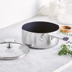 TRIPLE STEEL CONSTRUCTION: Three-layer tri-ply stainless steel bodies deliver even heating for incredible browning, searing, and sautéing results 5X HARDER COATING & 10X LONGER LASTING: Our diamond-infused ceramic nonstick coating is 5x harder and lasts 10x longer than traditional nonstick, metal utensil safe TOXIN-FREE: This collection’s healthy ceramic nonstick coating is free of PFAS, PFOA, lead, and cadmium VERSATILE COOKTOP COMPATIBILITY: Suitable for all stovetops, including induction, for maximum cooking flexibility EXTREME HEAT RESISTANCE: Mirror-finished stainless steel bodies are oven and broiler safe up to 600°F, glass lids up to 425°F COOL-TOUCH HANDLES: V-shaped cutouts in the stainless steel handles ensure they stay cool during stovetop use SPACE-SAVING DESIGN: Angled handle shape allows for easy stacking and storage EASY TO CLEAN: Dishwasher safe for convenient cleanup, though most messes wipe away effortlessly