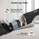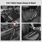 【Super Suction & Brushless Motor】 The cordless handheld vacuum has 100,000 RPM and provides up to 20KPA power suction. One-touch activation of dual suction modes that can clean up little messes and stubborn dirt efficiently and quickly, far surpassing that of regular vacuums. The brushless motor in this vacuum is perfectly designed to meet cleaning needs for various occasions such as at home, in the office, and in cars. Tips: If you accidentally absorb wet objects and water, it needs to be wiped dry right away to avoid damage to the motor. 【Easy to Maintain & Washable Dual-Filter】The car vacuum features a user-friendly one-button emptying design for a better clean experience. Equipped with an upgraded filtration system of HEPA filter and stainless steel can filter the dust to prevent suction loss and clogging. The stainless steel filter can effectively filter large particles of debris, and the HEPA filter can effectively filter tiny particles to prevent damage to the motor. Both filters and dust cup are washable, offering cost-effective maintenance. 【Lasting Power with Charging Dock】The rechargeable handheld vacuum is designed with a 2500 mA large-capacity battery, delivering lasting suction power for extended operation long time on standard suction after a 3.5-4 hour charge. Additionally, the battery indicator keeps you informed of the battery level,and the sleek charging dock design continuous charging requirements within a compact space 【4-In-1 Practical Accessories】This handheld vacuum has two accessories: A Sofa Nozzle and 2 in 1 Flat Nozzle. The brush on the flat nozzle is collapsible, eliminating the hassle of frequently changing nozzles, better for collecting crumbs, food debris, and sweeping the dust off uneven surfaces like a keyboard. The Sofa brush can help you collect pet hair, and protect the plush fabric surface. Perfectly meet your daily cleaning needs. 【Lightweight & Cordless Design】This vacuum cleaner is designed for ease of use with a 1.5 lbs lightweight construction, allowing for quick cleaning with single-hand operation. Its cordless design enables easy cleaning of every corner without the hassle of tangled wires, making it easy to take anywhere. The 200 ml dust cup is designed to handle messes in small areas, making cleaning a breeze and aiming to provide you with convenience.