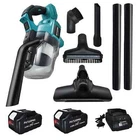 About Battery: - Compatible for 18V B series lithium battery,such as BL1850B(197285-8),BL1840B(197270-1),BL1830B(197602-2),BL1430B(197618-7),BL1820B(197487-6) - Compatible for BL1850,BL1840,BL1440(196391-6),BL1415(194560-3),BL1815N(196781-3) - NOT compatible for G Series battery such as BL1813G(196663-9) BL1413G(196882-7) BL1415G BL1430G BL1815G and so on - NOT compatible for 18v Ni-CD battery such as 1822(194465-7) Package Lists: Package 1: - 1*Electric Vacuum Cleaner (tool only) - 1*Crevice Brush - 1*Round Brush - 1*Floor Suction Nozzle - 2*Extension Rod - 1*Small Area Brush Package 2: - 1*Electric Vacuum Cleaner (tool only) - 1*Crevice Brush - 1*Round Brush - 1*Floor Suction Nozzle - 2*Extension Rod - 1*Small Area Brush - 1*4.0Ah Battery - 1*EU plug Fast charger Package 3: - 1*Electric Vacuum Cleaner (tool only) - 1*Crevice Brush - 1*Round Brush - 1*Floor Suction Nozzle - 2*Extension Rod - 1*Small Area Brush - 2*4.0Ah Battery - 1*EU plug Fast charger Details: Perfect fit: Compatible with Makita 18V batteries. Just plug in your own batteries on our professional vacuum cleaner and start your cleaning! Worry-free from charging: After testing, 4AH battery can maintain the machine for 10-15min use. If you own more than one battery, you can easily change to another fully charged battery rather than the long wait. Furthermore, our machine comes with low-voltage protection to protect your battery. The machine will automatically shut down when your battery is about to drain. Muti-Functional nozzle: Our package comes with 4 different nozzles and brushes. It’s your best assistant when you deal with different situations. You can easily suck out dust, pet hair, sand, food debris even the dirt hiding in the sofa. Machine Performance: Our hand-held vacuum cleaner has a high-power motor providing 21.7L/S super suction. 700ML container is included for waste collection. The detachable container is conducive to rapid garbage dumping.