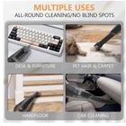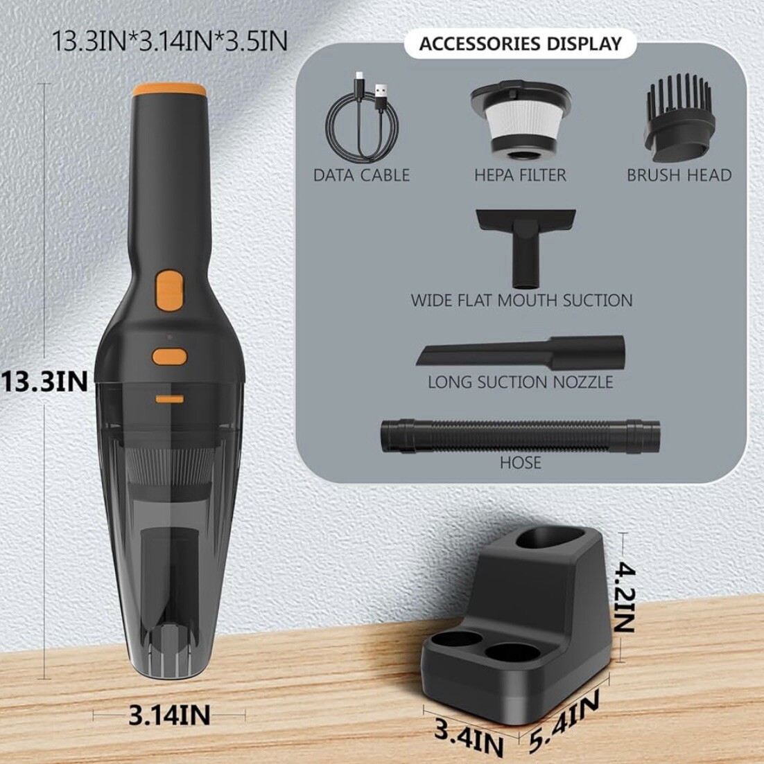 š¤©ć10KPA Strong Suction & Low Noiseć- The Cordless Hand Vac has a built-in high-efficiency motor with 37000Rpm vacuum rotation performance, which can generate up to 10000PA suction power and easily pick up crumbs, liquids, debris, and pet hair in one minute. The noise level is lower than 75bB, which will not disturb people and make the cleaning experience more comfortable, suitable for various occasions such as home, office, and car. šćHigh-Performance Battery-Safe Protectionć-This mini car vacuum has a built-in 3-cell 2000mAh rechargeable lithium-Ion battery, the portable vacuum cleaner can work for 25 minutes after 3-4 hours of full charge, which greatly saves waiting time and time doing chores! What's more, our charging system also offers 3 layers of protections, the temperature protection, input voltage protection and input current protection better ensure equipment safety. š ćCordless Design & Portableć - With a sleek and compact design, this rechargeable car vacuum weighs only 1.3 pounds, making it suitable for all kinds of people, especially women, and is great for cleaning entire rooms with minimal effort. The cordless design reduces the hassle of cords and can give you an unrestricted cleaning and carrying experience. š«¶ćMultiple Accessories for Multiple Usesć-Cleaning accessories include brush nozzle, long flat crevice nozzle and blowing hose, 2-in- 1 Crevice Tool & Dusting Brush can be used to clean sofas, crevices, corners, stairs and dust which is stuck in objects. The hose is best suited for hard-to-reach places.