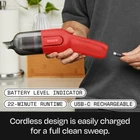 UNMATCHED CLEANING POWER: Take care of spills, pet hair, and pests with one compact handheld vacuum cordless design. Narrow, hard-to-reach spaces become simple to clean. LIGHTWEIGHT AND PORTABLE: This small vacuum cleaner is powerful enough to clean your wireless keyboard or car interior and compact enough to take it with you and store it anywhere. EXTENDED RUN TIME: Enjoy up to 22 minutes of uninterrupted cleaning with our high-capacity battery: fully rechargeable in just 3.5 hours. A perfect cordless vacuum cleaner for a thorough cleanup of any space. WASHABLE FILTER: The 130 ml dust bin capacity and removable filter ensures that our handheld vacuum can clean up your spaces without constantly clogging, jamming, or needing to be emptied. ATTACHMENT INCLUDED: This hand vacuum comes with a combination crevice and brush tool to help reach tight spaces or pick up grime in fabrics or carpeting. TRUSTED QUALITY: cETL approved with advanced safety technology for long-lasting durability and a 1-year assurance provided by . 14.8Wh/7.4V – BF02-RED