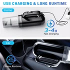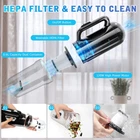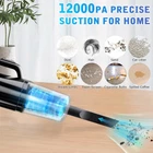 Cordless Handheld Vacuum for Car, 12000PA Car Vacuum Cleaner Rechargeable - 2 HEPA Filters- 3 in 1 Dust Buster - Air Blower - Hand Pump, Portable Hand Vacuum for Car Desk Keyboard Home Carpet [12000PA Powerful Car Handheld Vacuum]: cordless handheld vacuum uses a suction of 12000PA, getting up to twice the suction power of a similar hand vacuum, It can easily suck out daily pet hair, cat litter, ash, paper debris, and crumbs, providing an all-around protection for all the corners of your life. [Cordless Rechargeable Vacuum]: The wireless design makes this vacuum cleaner super handy without bulky or tangled cords. Weighing only 1120g, this hand hoover achieves a great balance between large dust cup capacity and lightweight. [Deep Cleaning, No Dead Angles]: The package comes with multiple nozzles. The flat nozzle is suitable for cleaning hard-to-reach narrow places, such as under sofas, car seat gaps, and laptop's keyboard. The brush nozzle performs well in cleaning car air outlets and pet hair on carpets. [Quick Charge, Long Cleaning Time]: This mini vacuum equipped 6000mAh large battery, it can work continuously for about 20- 30 minutes after fully charging for 4-5 hours. With USB charging cable, you can charge anytime anywhere. There have over-voltage protection, over-current protection and over-temperature. [Lower Noise]: A mini LED light to help you see better when cleaning the back of furniture or the interior of a car. small vacuum cleaner ensures the noise is super lower when working. It is quieter than most handheld vacuum and prevents from disturbing your pets.