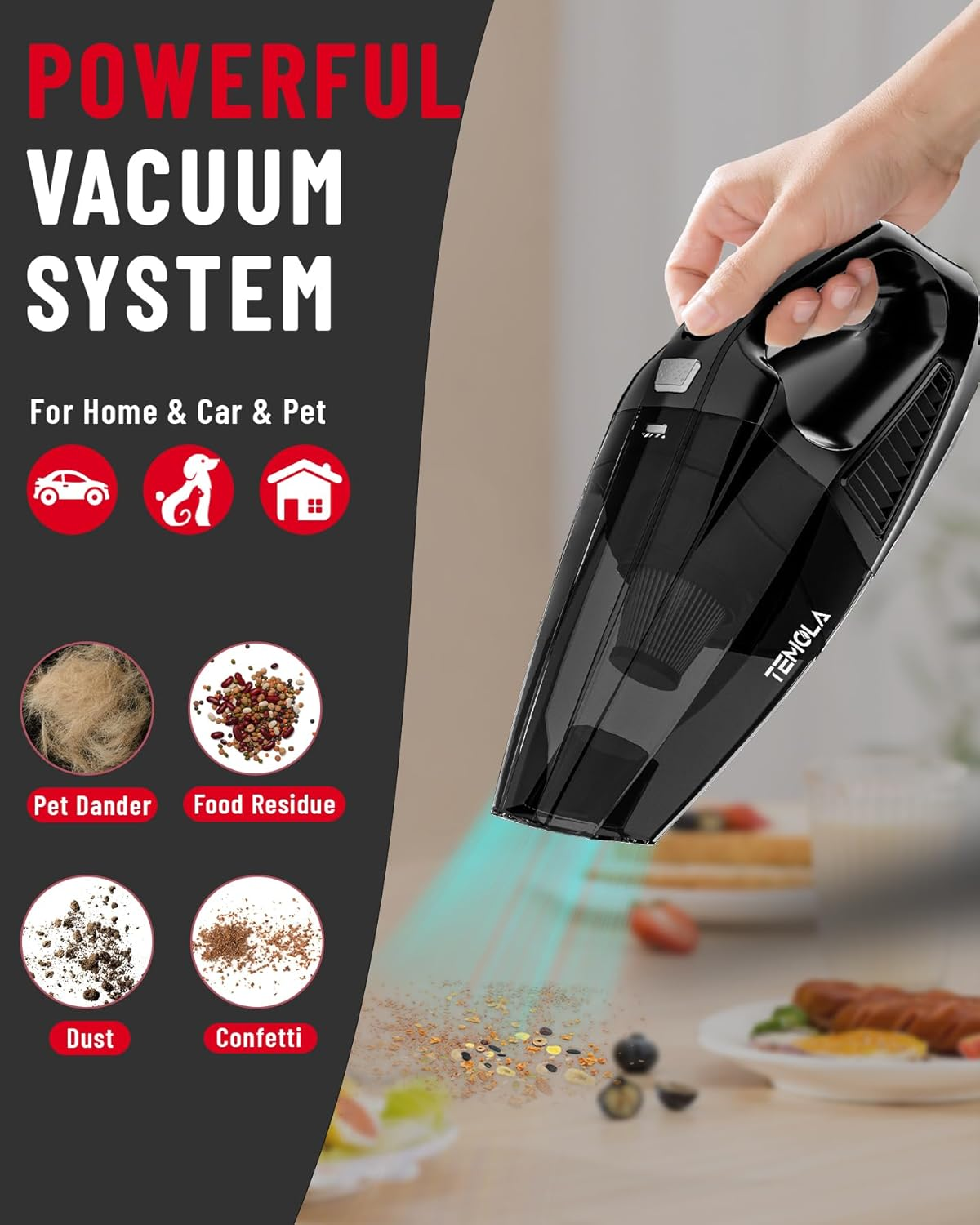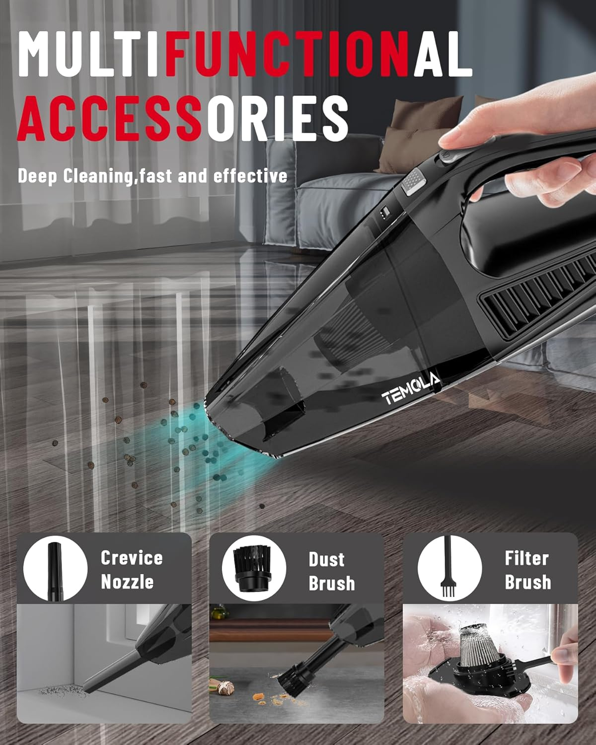 Menu Other Items Feedbacks About Us Contact Us Add To Favorites Handheld Vacuum Cordless, Car Vacuum Cleaner with Brushless Motor 12000Pa, Hand Vacuum Cordless Rechargeable with Stainless HEPA Filter, Mini Vacuum Car Accessories for Office and Home Cleaning Powerful Suction: The hand held vacuum cordless is equipped with a powerful high-speed motor, with speed up to 80000 RPM and wind pressure up to 12000Pa. The powerful suction helps you finish your cleaning work quickly. When the HEPA Filter becomes dirty, the device will activate the automatic protection function and stop working, better prolonging the use of the Car vacuum portable cordless. Car vacuum can be used in the office, the car seat, kitchen, bedroom, stairs, sofas, furniture, etc. Lightweight: The 1.07lbs Dust Busters cordless rechargeable has an ergonomic handle that is easy to hold and non-slip, ensuring you don't get tired while cleaning. essential car accessories for women or men. The rechargeable cordless design allows the handheld vacuum cordless cleaner to work without being limited by power cords, and the compact size makes it easy for you to use anywhere, anytime. Stainless Steel HEPA Filter: The mini vacuum cleaner is equipped with a stainless steel HEPA filter, which is made of higher quality stainless steel and is stronger and more durable than regular HEPA filters. The stainless steel filter in this car vacuum cleaner needs to be cleaned and kept dry to maintain suction power and extend its life. This handheld vacuum cordless comes with two filters, one in the product and one in the packaging, so you can change the filters whenever you like. Multifunctional: The small vacuum cleaner cordless is equipped with a variety of cleaning tools to meet your car detailing kit interior cleaning needs, including a dust brush, a crevice tool, a dust brush for loosening hair and dust and a crevice tool for cleaning sofa seat crevices and corners. Charge anywhere with the Type C Quick Charge Cable, fully charged in just 4 hours, A green indicator light on the car vacuum portable cordless will alert you when the battery is fully charged. Perfect Present & Customer Service: We offer a 1-year quality assurance, including a professional after-sales team that responds online 24 hours a day, and a 30-day money back for dissatisfaction. If you have any questions or suggestions about the aspiradora para carro, please don't hesitate to at the first time! We will reply to you within 24 hours for your satisfaction. Product Description Used with the attached crevice nozzles, the car vacuum can help you clean hard-to-reach areas such as nooks and crannies, making your cleaning a breeze Used with the attached dust brush, the TS15BS handheld vacuum can help you clean up the rubbish in the workspace and make your life and work easier TEMOLA Vacuum & Inflators & Filter Add to Cart Add to Cart Add to Cart Customer Reviews 4.3 out of 5 stars 41 3.6 out of 5 stars 3,219 — 3.9 out of 5 stars 1,513 4.2 out of 5 stars 131 — — Price $18.19 $ 18 . 19 $9.99 $ 9 . 99 — — $18.99 $ 18 . 99 $12.99 $ 12 . 99 $11.99 $ 11 . 99 Power Super suction power Super suction power Super suction power 150PSI 150PSI Super suction power Super suction power How to Use Cordless Use Cordless Use Cordless Use Cordless/Plug-in Use Cordless/Plug-in Use Filters Filters Watt Power 120W 120W 120W 120W 120W 120W 120W Applicable Car/Home/Office/Pet Car/Home/Office/Pet Car/Home/Office/Pet Car/Balls/Motorcycles/Bicycles Car/Balls/Motorcycles/Bicycles TS15/TS15BS TS15/TS15BS Product Weight 1.07 LBS 1.07 LBS 0.84 LBS 0.92LBS 0.92LBS 0.08 LBS 0.07 LBS How long should the battery be charged for the first time of charging? Approximately 3 Hours. Why the new device can not work? Maybe out of power consumption after prolonged transport, It will will benefit for the battery life that fully charging your handheld vacuums before use. What is the reason for the sudden decrease in suction? If the filter becomes dirty, the dust will block the suction. In this case, the filter must be cleaned and dried before use. It is recommended to clean and dry the HEPA filter after each use to effectively extend the life of the machine. Can it be used as a liquid aspirator? No,it is not a liquid aspirator Item Specification Item model number TS15BSAA-MSUS Capacity 350 Grams Number of Items 1 Control Method Touch Is Electric Yes Charging Time 4 Hours Controller Type Push Button Filter Type HEPA滤网 Number of Power Levels 1 Batteries required No Model Name TS15BSAA-MSUS Form Factor Handheld Indoor/Outdoor Usage Indoor Number of Handles 1 Item Weight 1 pounds Battery type Lithium-Ion Battery Description Lithium-Ion Special Feature Cordless Portable Yes Color Black Is Cordless? Yes Voltage 74 Volts Item Weight 1 Pounds Batteries 1 Lithium Ion batteries required. (included) Surface Recommendation Dual Action Power Source Battery Powered Recommended Uses For Product Car, Office, Home, Furniture, Sofa, Bare Floor Included Components Batteries included Product Dimensions 11"L x 4"W x 4"H Dimensions Shipping Returns Additional Info Product Dimensions: 4.0 "h x 11.0 "h x 4.0 "h. Weight: 1.0 lb Fast shipping is very important for us. Our standard shipping service is FREE. Your order will be shipped within 1-3 business days upon full payment received. Most items are delivered within 3-5 business days, however, please allow 3-10 business days. We are shipping only to USA. We only ship to the confirmed Paypal address. We reserve the right to cancel any order for any reason at any time. We are not responsible for undeliverable addresses. We offer a 30 day return policy from checkout winning date. Your satisfaction is guaranteed! If for any reason you are unhappy with your item, just return it within 30 days for a full refund, minus shipping cost. Please contact us prior to initiating a return so that we can issue you a refund authorization. Items defective upon receipt must be packaged in their retail packaging