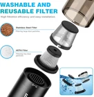Store New Arrivals Add to Favorite View Feedback Contact Handheld Vacuum Cordless, Portable Car Vacuum, 14000PA Powerful Suction Vacuum Cleaner with LED Light and Air Duster 2 in 1, Low Noise Rechargeable Mini Hand Held Vacuum for Car Home Pet Office Description Item model number VC012 Capacity 0.15 Liters Number of Items 1 Noise Level 75 dB Country of Origin China Surface Recommendation Carpet Power Source Battery Powered Filter Type HEPA Filter Controller Type Push Button Number of Power Levels 2 Batteries required Yes Product Dimensions 4.33"L x 1.38"W x 0.98"H Model Name VC012 Form Factor Handheld Included Components Brush Indoor/Outdoor Usage Indoor Number of Speeds 2 Control Method Touch Number of Handles 1 Item Weight 1.48 pounds Connectivity Technology USB Charging Time 4 Hours Battery Description Lithium-Ion Runtime 20 minutes Special Feature HEPA Filtration Amperage 10 Amps Portable Yes Battery type Lithium-Ion Color Black Wattage 120 watts Voltage 12 Volts Item Weight 0.67 Kilograms Is Cordless? Yes Batteries 1 Lithium Ion batteries required. (included) Recommended Uses For Product ["Car", "Home", "Kitchen", "Pets", "Office", "Balloon Inflation", "Outdoor Cushion Inflation", "Swimming Ring Inflation"] Motor Horsepower 0.16 horsepower 【Powerful Suction Handheld Vacuum Cleaner】 Our car handheld vacuum utilizes a high-speed DC motor and innovative aluminum alloy fan blades, delivering a power output of up to 85W and exceptional suction capability. Two modes: ECO mode - 10000PA, Max mode - 14000PA. The vacuum cleaners for home is equipped with a washable and reusable 1 * metal filter and 2 * HEPA filters, capable of filtering 99.99% of dust, making it easy to clean dust, debris, pet hair, and more. 【Low Noise Hand Held Vacuum and Air Duster 2 in 1】This pet hair vacuum is very quiet, with a noise level of <75dB, ensuring a low-noise cleaning experience that won't disturb family members' rest or startle pets. It combines both suction and blowing functions, allowing for quick and efficient removal of surface dust or debris, as well as blowing away dust or sand from crevices and corners. It can be used for cleaning anywhere, enabling comprehensive and efficient cleaning. 【Ultra-Lightweight Mini Handheld Vacuum Cordless】The portable Mini Vacuum adopts ergonomic design, with a lightweight construction of only 1 pound, allowing for quick cleaning with single-hand operation. Its cordless design enables easy cleaning of every corner without the hassle of tangled wires, ensuring more efficient cleaning. With its compact size, it is easy to carry and store, saving space. With a large capacity of 0.15L, it fully meets your daily trash storage needs. 【LED Display & Hand Vacuum Cordless Rechargeable】The wireless handheld vacuum cleaner has an LED display screen. Press and hold for 3 seconds to power it on or off. When turned on, the LED display screen shows the current battery level. It also incorporates a lighting design, allowing dust to have nowhere to hide. This car vacuum quick charging takes approximately 3.5-4 hours. With a full charge, the ECO mode provides a runtime of 30 minutes, while the MAX mode offers a runtime of 20 minutes. 【One-Click to Dust & Easy Cleaning】The vacuum features a one-click emptying mechanism, allowing you to effortlessly and quickly dispose of the dust with just a button press. The transparent design provides a clear view of the dust collection process, reminding you to empty it in a timely manner. The nozzle of the mini cordless vacuum cleaner features a built-in flip cover, ensuring that dust won't easily spill out when it's not in operation. Product Description The video showcases the product in use. The video guides you through product setup. The video compares multiple products. The video shows the product being unpacked. 1 Various Nozzles 2 Powerful Suction 3 Low Noise Ultra-Long Usage Time With a charging time of 3.5-4 hours, it can be fully charged and provide approximately 30 minutes of usage time. Compact Size, Easy to Carry Measuring approximately 10.6 '', it is easy to carry and can be neatly stored in both your home and car. LCD Screen Display The design of the LCD display screen makes it easy to see the battery level and suction mode of the mini wireless handheld vacuum cleaner, enhancing usability and allowing for timely charging. LED Light Illumination Press and hold for 3 seconds to activate the light mode of the car vacuum cleaner, which helps you clean more meticulously and effectively, leaving no place for dust to hide. One-Click Dust Removal Simply press the button once to effortlessly and quickly remove dust. The transparent design allows you to see the dust collection process clearly, reminding you to empty it in a timely manner. Washable Filter Equipped with a removable stainless steel mesh and HEPA filter. Dual-layer filtration for effective cleaning. Regularly cleaning the filter prevents suction loss and clogging, ensuring optimal suction power. Suitable for Many Occasions & Multifunctional use This cordless mini vacuum can be widely used in places such as cars, homes, kitchens, pets, and offices. The additional blowing function can also be used for inflating balloons, outdoor cushions, and swimming rings. You will get: handheld vacuum:1, metal filter:1, HEPA filter cartridge:2, Type-C charging cable(without adapter):1, brush mouthpiece combination:1, Brush nozzle combination:1. A wide range of accessories to make cleaning easier. ABOUT US We offer the best prices around on high quality products. Our E-store includes media such as books, movies, music and games while offering electronics, toys, sporting apparel, clothing, tools, general home, garden items and more. SHIPPING We are always working hard to ensure your package arrives as soon as possible. Please understand that some factors like weather, high postal traffic, and the performance of shipping companies are outside of our control. We offer free shipping to 
