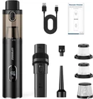 【Powerful Suction Handheld Vacuum Cleaner】 Our car handheld vacuum utilizes a high-speed DC motor and innovative aluminum alloy fan blades, delivering a power output of up to 85W and exceptional suction capability. Two modes: ECO mode - 10000PA, Max mode - 14000PA. The vacuum cleaners for home is equipped with a washable and reusable 1 * metal filter and 2 * HEPA filters, capable of filtering 99.99% of dust, making it easy to clean dust, debris, pet hair, and more. 【Low Noise Hand Held Vacuum and Air Duster 2 in 1】This pet hair vacuum is very quiet, with a noise level of <75dB, ensuring a low-noise cleaning experience that won't disturb family members' rest or startle pets. It combines both suction and blowing functions, allowing for quick and efficient removal of surface dust or debris, as well as blowing away dust or sand from crevices and corners. It can be used for cleaning anywhere, enabling comprehensive and efficient cleaning. 【Ultra-Lightweight Mini Handheld Vacuum Cordless】The portable Mini Vacuum adopts ergonomic design, with a lightweight construction of only 1 pound, allowing for quick cleaning with single-hand operation. Its cordless design enables easy cleaning of every corner without the hassle of tangled wires, ensuring more efficient cleaning. With its compact size, it is easy to carry and store, saving space. With a large capacity of 0.15L, it fully meets your daily trash storage needs. 【LED Display & Hand Vacuum Cordless Rechargeable】The wireless handheld vacuum cleaner has an LED display screen. Press and hold for 3 seconds to power it on or off. When turned on, the LED display screen shows the current battery level. It also incorporates a lighting design, allowing dust to have nowhere to hide. This car vacuum quick charging takes approximately 3.5-4 hours. With a full charge, the ECO mode provides a runtime of 30 minutes, while the MAX mode offers a runtime of 20 minutes. 【One-Click to Dust & Easy Cleaning】The vacuum features a one-click emptying mechanism, allowing you to effortlessly and quickly dispose of the dust with just a button press. The transparent design provides a clear view of the dust collection process, reminding you to empty it in a timely manner. The nozzle of the mini cordless vacuum cleaner features a built-in flip cover, ensuring that dust won't easily spill out when it's not in operation. Product Description 1 Various Nozzles 2 Powerful Suction 3 Low Noise Ultra-Long Usage Time With a charging time of 3.5-4 hours, it can be fully charged and provide approximately 30 minutes of usage time. Compact Size, Easy to Carry Measuring approximately 10.6 '', it is easy to carry and can be neatly stored in both your home and car. LCD Screen Display The design of the LCD display screen makes it easy to see the battery level and suction mode of the mini wireless handheld vacuum cleaner, enhancing usability and allowing for timely charging. LED Light Illumination Press and hold for 3 seconds to activate the light mode of the car vacuum cleaner, which helps you clean more meticulously and effectively, leaving no place for dust to hide. One-Click Dust Removal Simply press the button once to effortlessly and quickly remove dust. The transparent design allows you to see the dust collection process clearly, reminding you to empty it in a timely manner. Washable Filter Equipped with a removable stainless steel mesh and HEPA filter. Dual-layer filtration for effective cleaning. Regularly cleaning the filter prevents suction loss and clogging, ensuring optimal suction power. Suitable for Many Occasions & Multifunctional use This cordless mini vacuum can be widely used in places such as cars, homes, kitchens, pets, and offices. The additional blowing function can also be used for inflating balloons, outdoor cushions, and swimming rings. You will get: handheld vacuum:1, metal filter:1, HEPA filter cartridge:2, Type-C charging cable(without adapter):1, brush mouthpiece combination:1, Brush nozzle combination:1. A wide range of accessories to make cleaning easier.