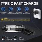 【Solve The Problem Of Multiple Cleaning Dust Bucket】Cleaning the dust bucket too many times? With a large built-in capacity of up to 260ML, excess waste can be disposed of in one step, eliminating the need for multiple dumps. Our car vacuum cleaner is designed with a push-button latch that unlocks at the touch of a button when cleaning the dust collector. It also incorporates a traditional rotary opening and closing to clean the trash, you can choose how you want to clean the dust collector. 【Multiple Accessories To Solve Cleaning Problem】hand held vacuum is equipped with multi-cleaning nozzles to meet all your cleaning needs, offering a bespoke solution for each of your unique cleaning needs. The brush nozzle adopts hard bristles, which are not easy to deform. Can be used to absorb fine particles attached to blanket or car trunk. Our cordless vacuum cleaner also comes with a 13.78inch flexible hose that makes it easy to snake into tight spaces like seat and under pedals. 【Powerful Suction & Lightweight Design】hand vacuum cordless is equipped with a high efficiency motor, can maximum offer 8000PA powerful suction, which is enough to meet your cleaning needs for dust, food residue, cat litter and some difficult-to-clean debris in the car or home. Our portable handheld vacuum has an ergonomic U-shaped handle design that provides a comfortable grip. And the hand vacuum cleaner only weighs 1.07lb, you will not feel tired even if it is held for a long time. 【Say goodbye to cord, charge at any time】No longer have to worry about tangling cords while cleaning! car vacuum portable cordless design allows you to move freely while cleaning your car, home, kitchen and office. Built-in 2*2000mAh lithium-ion rechargeable battery, can be fully charged in 4-4.5 hours and can work continuously for 20-25 minutes. Included a USB-C charging cable, which makes charging is not limited, laptop, car charger, power bank and other devices can be charged. 【Washable Filter--Reusable And Washable】portable car vacuum equipped with removable HEPA filter, which is washable and reusable. Regular cleaning the filter helps to maintain suction effect. The transparent dust collector can let you clearly see when your garbage needs to be dumped. Using tips: Please clean the filter in time to make sure the dust buster can work properly and completely dry the filter before use.