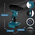 Prod uct De scription Featu re : 【Parameters】MAX 130000RPM/Min | 4 Working Gears: 8M/S, 17M/G, 25M/S, 30M/S | Input: 18V | Max. Current: 9.5A | Max. Power: 200W 【Compatible With Bosch PBA 18V Battery】Perfectly compatible with Bosch 18V PBA PSB PSR 18V Home and Garden System Battery, e.g. 1600A005B0 1600A011T8 1600A00DD7 etc. 2607337187 BHZUB11830.Connect your own battery and enjoy the comfort of blowing! The Jet Fan turns off automatically when the battery voltage is below 15.5v to avoid overload damage. (Battery NOT Included) Note:GBA series not apply!!!! 【Easy to Operate and Safe to Use】The blower is controlled by only 2 buttons, 1 button controls the on/off switch. The other button changes 4 speeds: 8M/S, 17M/S, 25M/S, 30M/S. Jet Fan up to 130 000 RPM/Min. Built-in low voltage protection to protect your battery, please feel free to use it. Warm tip: Remove it from the battery when you are not using it. 【High Durability and Efficiency】The electric air duster is made of high hardness, high temperature resistant material with strong explosive power, excellent durability and long service life. 【Wide range of uses】It is a multi-functional cleaning tool for home, car and office, suitable for carbon fire blowing, industrial dust blowing, dust blowing, keyboard cleaning, car and motorcycle cleaning, car center console cleaning, car crevice cleaning, foot cleaning and so on. Package Incl udes : 1 *Jet Dry Fan (Battery NOT Included) 3* spray nozzle 1 * instructions