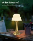[Cordless Lamp & Portable Design] Choose the cordless designed table lamp, no cord twisting annoyance, put this battery operated light on the desk without occupying any space. This mini lamp is lightweight and compact, easy to grip and fits comfortably in your hand, accompanying you through your home, backyard, patio! [IP44 Waterproof for Outdoor and Shower] PE Plastic lampshade with 100% closed structure, the all-metal body insulates the water and dust, the design to adjust the light by touching. All above made it a not only a mini table lamp full of romantic atmosphere but a portable outdoor cordless lamp guarantee full functionality even when it rains. It's the ideal outdoor lamp for camping, patio, garden, kitchen and even as a shower lamp. [Build-in Rechargeable Battery & 16 Hours Lighting] As this battery operated lights adopt a safe and durable rechargeable battery, it can be used up to 16 hours(The brightest state) as long as fully charged with 4-6 hours in advance, and you can easily charge this cordless desk lamp by using any USB-C cable with 5V/2A input. This rechargable lamp only needs a full charge, enough to last a whole week! [Stepless Dimmable Light & 3 Colors Desk Lamp] Simply change the light of this led desk lamp from the brightest to the darkest by long pressing the top. In addition, by tapping the top of the lamp you can switch the light color between Warm Light(2700K), Natural Light(4000K), Daylight Light(6000K). Three colors of lighting + stepless dimming make this wireless lamp almost perfect for all home scene needs. [The Creator Of Romantic Atmosphere] This vintage-style cordless table lamp, with its warm glow and elegant design, creates a romantic ambiance in your bedside, dining table, shower cubicle or bathtub. Its noble and elegant brass base exude a timeless charm, casting a soft, diffused light that warms up any room. Perfect for cozy evenings, it adds a touch of nostalgia and intimacy to your space. [Prompt Response and Lifetime Service] If there is any problem with this cordless lamp, we accept unconditionally ONE-month free returns & Three-Month free replacement & Lifetime Technical Support. Contact us if you need help, and we will reply to your message within 24 hours. CONTACT US: Login your Amazon account > choose "Your orders" > find the order ID > click "Seller name"> click "Ask a question'. Our integrity and reliability are the guarantee that you can order it with no hesitate.