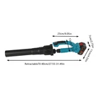 Specifications Material: ABS, Stainless Steel Color: Black, Blue Plug: US Standard Charging Time: 3h 1-gear Battery Duration: 45min 2-gear Battery Duration: 30min 3-gear Battery Duration: 22min 4-gear Battery Duration: 16min 5-gear Battery Duration: 12min Operating Voltage: 21V Maximum Working Current: 16A Lithium Battery Capacity:15000mAh Max. Speed: 30000r/min. Max. Motor Power: 600W Maximum Wind Speed: 38M/S(85mph) Product Length: 70-80cm/27.55-31.49in(Retractable) Handle Size: 23*13cm/9.05*5.11in Battery Size: 7*11cm/2.75*4.33in Packing Size: 42*25*11.5cm/16.53*9.84*4.52in Gross Weight: 2.3kg/5.07lbs Net Weight: 2.1kg/4.62lbs Package Included 1 x Cordless Blower 1 x Extension Blower Tube 1 x Battery 1 x Charger 1 x English User Manual Cordless Leaf Blower Lightweight Rechargeable Lithium Battery NEW Description Are you still struggling with snow on the roads, leaves in the garden or dust in dead corners? With its powerful motor, this electric leaf blower can easily take care of your house, garden, garage and car. Equipped with a high-capacity lithium battery, it allows long hours of outdoor cleaning work and says goodbye to cord troubles. The battery also features overheating protection to extend its life. Specifications Material: ABS, Stainless Steel Color: Black, Blue Plug: US Standard Charging Time: 3h 1-gear Battery Duration: 45min 2-gear Battery Duration: 30min 3-gear Battery Duration: 22min 4-gear Battery Duration: 16min 5-gear Battery Duration: 12min Operating Voltage: 21V Maximum Working Current: 16A Lithium Battery Capacity:15000mAh Max. Speed: 30000r/min. Max. Motor Power: 600W Maximum Wind Speed: 38M/S(85mph) Product Length: 70-80cm/27.55-31.49in(Retractable) Handle Size: 23*13cm/9.05*5.11in Battery Size: 7*11cm/2.75*4.33in Packing Size: 42*25*11.5cm/16.53*9.84*4.52in Gross Weight: 2.3kg/5.07lbs Net Weight: 2.1kg/4.62lbs Application It is widely used for cleaning garages, patios, porches, walkways, cars, balconies and decks. It cleans snow, leaves, sheds, dust, wood chips, pet hair, industrial debris and can also be used to create a windblown effect for photography. Package Included 1 x Cordless Blower 1 x Extension Blower Tube 1 x Battery 1 x Charger 1 x English User Manual Features Robust and Durable: The high-quality ABS housing is robust, wear-resistant and impact-resistant, effectively protecting the internal components and extending the service life. Adjustable Speed : Depending on the operation options, this leaf blower offers five-speed gears for peed adjustment . Long Endurance: The 15000mAh rechargeable lithium battery can be completely recharged in 3 hours and lasts up to 45min on the lowest gear , allowing a larger area to be cleaned in one go. Strong Wind: Turbocharging technology and large-diameter air outlet pipe burst strong wind, with a maximum wind speed of 85mph, greatly increasing work efficiency. The axial flow structure (the fan, motor and air duct on the same axis) can effectively increase airflow. User-friendly Design: The extension blow tube can be removed and installed for your convenience. The stainless steel telescopic bar allows free adjustment of the blowing duct length to accommodate people of different heights for more relaxed use and less back strain. Easy to Carry and Operate: The compact and lightweight (4.62lbs) machine is easy to carry and operate . The wireless design avoids the limitation of the power cord and gives you more flexible working space. Good Heat Dissipation: Multiple cooling holes on the body provide good heat dissipation to prevent the motor from burning out and provide stable performance over a long period of time. Customer Service : We aim to provide quality products and services. If you have any problems, please feel free to contact us. We will reply and solve the problem for you as soon as possible. Details Anti-slip Handle : The soft non-slip handle is comfortable to hold and can be easily operated with one hand, without fatigue over long periods of time. Pure Copper Motor: The 600w brushless pure copper motor has strong power, stable operation, low power consumption and low noise, giving you the ultimate user experience. Notes 1. Please note that heavy piles of fallen leaves or snow are difficult to blow. 2. Please charge the battery after receiving it, and it is recommended to charge it every 1-2 months to prevent the battery from decreasing and prolonging its life. At the same time, do not charge the battery immediately after using the leaf blower. Please remove the battery before each cleaning. Please note that the smaller the gear, the longer the battery life. 3. Please read the manual completely before installation and use, and pay particular attention to the safety instructions included. 4. Please allow the slight color difference caused by the shooting light and 1-3cm error due to manual measurement, and make sure you do not mind before you order. Payment Delivery details Terms of sales About us Contact us Payment We accept ebay payment 。 Fees such as import duties, taxes are not included in the item price or shipping costs. These charges are the buyer's responsibility. Delivery details Shipping: 2-9 working days to: USA Terms of sales We maintain high standards of excellence and strive for hundred percent customer satisfaction. Feedback is very important to us. We hope that you contact us immediately before you give neutral or negative feedback, so that we can address your concerns. It is impossible to address issues if we do not know about them! About us Your satis faction is our ultimate goal. We work hard to earn your trust and future business. Our certified technicians have tested each item before shipping. The unit comes with 1 year limited warranty on all manufacturing defects. a) If you receive a defective item, you may return it or ask for a discount. Please contact us within 14 days after you receive the package. b) What you returned must be intact and in its original packaging as re? u. Customer