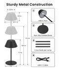 【MULTIFUNCTIONAL COLOR TEMPERATURES】: Enjoy the convenience of a touch lamp that allows you to easily switch between three color temperatures (3000K warm white, 4000K daylight white, and 6000K natural white). Adjust the brightness steplessly from 10% to 100% with just a long press, making it an ideal choice among rechargeable table lamps. 【3 Lighting Modes& Dimmable】-Enjoy the convenience of a touch table lamp that allows you to easily switch between three color temperatures (3000K warm white, 4000K daylight white, and 6000K natural white). Adjust the brightness steplessly from 10% to 100% with just a long press, making it an ideal choice among cordless table lamps. 【Rechargeable & Energy Saving】-This rechargeable battery table lamp come with a powerful 5200mAh battery that delivers up to 8-30 hours of continuous use on maximum brightness after 4-8hours of charging. Ensuring you have reliable lighting for extended period. Say goodbye to bulb and battery replacements, this energy-efficient design helps you save on both energy bills and maintenance. 【Eye-Friendly LED Desk Lamp】-This LED desk lamp for home office offers uniform 360° illumination with no dark spots. Equipped with flicker-free LED beads, it emits a soft, warm glow that significantly reduces eye strain during long hours of reading or working. Customize the light intensity to suit your needs, making it the perfect companion for students, kids, and professionals alike—whether at home or in the office. 【Portable &Adjustable LED Table Lamp】-This 3-in-1 wireless table lamp features a minimalist design with a sleek metal head and detachable parts that allow you to effortlessly adjust the height to suit your needs. The 3 straight metal rods provide a sturdy structure, while the smart anti-slip pads ensure stability and prevent tipping over even in outdoor use. Highly recommend it to anyone looking for a practical and stylish lighting solution! 【Versatile Ambient Lighting】-This outdoor table ambient lamp is great for adding a pop of color and practical lighting anywhere! Transforms ordinary moments into extraordinary experiences, making it perfect for entertaining guests, enjoying a cozy evening, or creating a romantic atmosphere for couple's dates. Ideal for family gatherings, dinner parties, outdoor patios, and camping trips. While also serving as a reliable backup light during power outages. 【Worry-free Service】- We provide 180 days of free replacement service and 7x24 friendly customer service. You will get 2 x cordless table lamps, 2 x USB-C cables, user's guide. At , we are committed to your satisfaction. Please rest assured to buy!