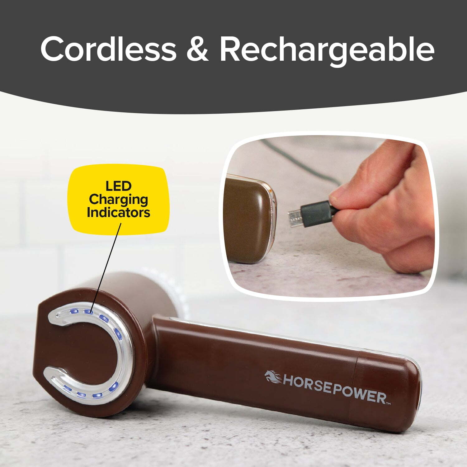 Description Now you can easily power through dirt and grime on tile, grout, showers, sinks, tubs, pans and more with this amazing cordless scrubber! The rechargeable scrubber spins at an incredible 350 RPMs to grind through almost any kind of caked-on dirt. It comes complete with 5 brush heads a scrub sponge, cloth polisher, steel wool, flat brush and pointed head. Plastic and electronics. Includes charging cord. Great to use in bathrooms, kitchens and outdoors. 7 3/4"L x 6 1/4"W x 2 1/2"H. 6-Piece Set. Material TypePP (Plastic),Electronic,Other Includes five brush heads: scrub sponge, microfiber polisher, steel wool, flat brush, and pointed brush. This gives you the flexibility to handle any cleaning task with ease.