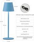 Store New Arrivals Add to Favorite View Feedback Contact Cordless Rechargeable Table Lamp Set of 2, 5000Mah Battery Powered LED Desk Lamps, 3 Color Stepless Dimming Up, Portable Table Light Lamp for Bedroom Restaurant Outdoor (Sky Blue) Description Item model number AMZ-TBL-020-Blue-2 Light Source Type LED Style Modern Number of Items 2 Power Source Battery Powered Control Method Touch Batteries Included? Yes Lighting Method Adjustable Mounting Type Tabletop Lamp Type Table lamp, Desk lamps Number of Pieces 2 Room Type Bar, Kitchen, Bedroom, Living Room, Dining Room Product Dimensions 3.93"D x 3.93"W x 14.2"H Material Metal, Acrylic Batteries 2 Lithium Polymer batteries required. (included) Installation Type Tabletop Controller Type touch Finish Type Coated Specific Uses For Product Cordless, Portable, 5000mAh Battery Powered, 3 Color Dimmable, Type-c Charging Cable Included Indoor/Outdoor Usage Outdoor, Indoor Brightness 160 Lumen Country of Origin China Batteries Required? Yes Item Weight 3.08 pounds Connectivity Technology USB Special Features Portable, Dimmable, Type-C Charging Cable Included, Cordless, Battery Powered Special Feature Portable, Dimmable, Type-C Charging Cable Included, Cordless, Battery Powered Part Number AMZ-TBL-020-Blue-2 Shade Color Sky Blue Color Temperature 2700 Kelvin Color Sky Blue (2 Pack) Wattage 5 watts Is Cordless? Yes Base Material Metal Shape Round Voltage 5 Volts (DC) Recommended Uses For Product Reading, Sleeping, Camping, Decoration, Power Outage Shade Material Metal Finish types Coated Included Components Batteries included Switch Type Touch 【Cordless Portable Design】 Convenient cordless design, no rope in the way, take it with you and place it wherever you need to use it. The table lamp is moderate in size, does not occupy visual space, simple and fashionable design makes your home more tasteful, suitable for reading, working, studying, resting, can be placed on the dining table, bedroom, living room, balcony, patio, bar, camping and other places, home decor. 【Battery Powered】 Built-in 5000mAh rechargeable battery, charging time is 4-6 hours, in the brightest state can be used about 8-24 hours, the darkest state can be used about 24-40 hours. Red light is on when charging, green light is on when fully charged. When not in use for a long time, the battery will enter into a dormant state, need to cycle several times to stimulate the battery activity. It should be placed at room temperature for use, low temperature will affect the performance and service life of the battery. 【3 Color Stepless Dimmable】 Touch switch design, light touch to switch the light mode, light color: warm white light, warm light, white light. Long press can control the brightness, stepless dimming (5%-100%), color temperature: 3000K-6000K.You can adjust the brightness or light color you need according to the place you are in, which can meet all your lighting needs and create a different lighting experience for you. 【Metal Material】The body is made of metal material with baked enameled surface to prevent scratches and corrosion. The gold/silver color models have electroplated surface treatment, smooth and texture. The lampshade is made of acrylic, good light transmission, not blinding, care for your eyes. The base includes non-slip pads to prevent accidental tipping. Not only for indoor use, also suitable for outdoor or camping. 【After-Sale Service】Stylishly designed, beautiful and practical, this table lamp creates a sense of ambiance while providing reliable lighting that won't cause eye strain. If you encounter any problems during use, please contact us and we will do our best to solve them for you. Product Description PUSU Cordless Desk Lamp Note: When not used for a long time, the battery will enter into a sleep state, and needs to be recharged several times to stimulate the battery activity. It should be placed in a place with normal temperature, low temperature will affect the performance of the battery and reduce the capacity and service life. Color: Black or White or Gold Material: Metal + Acrylic Light Source: Built-in LED Power: 5W Input Voltage: DC5V-2A Battery Capacity: 5000mAh Color Temperature: 3000K-6000K Stepless Dimming Switch: Touch Button PUSU is a lighting brand dedicated to creating lamps that are both stylish and functional. Based on our understanding of lighting technology, we draw inspiration from everyday experiences, put ingenuity into simple craftsmanship, and create chic products with creativity and passion. PUSU Cordless Desk Lamp Touch switch design, light touch to switch light mode: 3000K-6000K White light, warm white light and warm light. Long press to control light brightness (5%~100%). When you need to fall asleep, set the lowest brightness to cozy up and help you sleep. The highest setting provides light for work and study. It can also be used as an emergency outdoor light source during power outages or camping trips. Built-in 5000mAh rechargeable battery, fully charged in 4-6 hours. It can be used for about 8 hours in the brightest state and 24-40 hours in the darkest state. Lamp body made of iron metal Soft and comfortable light Simple and stylish appearance Gift options for friends and family The lamp body is made of metal, sturdy and durable. The black/white outer layer is spray-painted process, and the gold color is electroplated process, even coloring, delicate texture. Choose a stable LED light source, soft and comfortable light without glare, suitable for work, study or placed on the dining table to add atmosphere, and can also be used as a night light when you wake up at night. Simple and stylish table lamp, appearance, convenient touch switch plus cordless design, easy to operate. Functional and decorative at the same time, easy to integrate into a variety of home decorating style. ABOUT US We offer the best prices around on high quality products. Our E-store includes media such as books, movies, music and games wh