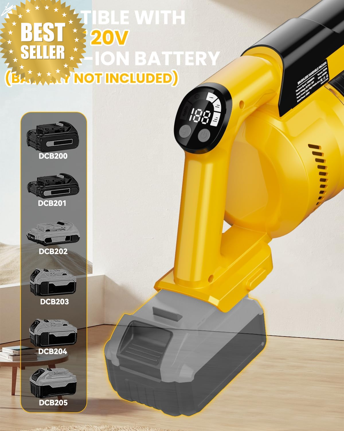 Fa lconbay_US Cordless Stick Vacuum 35KPA 7-in-1 for Dewalt 20V HEPA 350W Motor Carpet Floor FEATURES 🌀 Cordless Stick Vacuum Cleaner | 35KPA Suction, 350W Brushless Motor | 7-in-1 Design, HEPA Filter | Compatible with DEWALT 20V Batteries (Battery Not Included) Take your cleaning to the next level with this powerful cordless vacuum designed to run on DEWALT 20V Max batteries . No need to invest in extra batteries—simply use the ones you already own for uninterrupted cleaning. With a 350W brushless motor delivering 35KPA suction , this vacuum pulls up embedded dirt, pet hair, crumbs, and fine dust across carpets, hardwood floors, and cars. The 7-in-1 convertible design , LED motorized floor brush , and smart touch screen make it versatile, efficient, and easy to use anywhere in your home or vehicle. Built with multi-cyclonic filtration and a HEPA filter , it ensures cleaner air while maintaining strong suction power. 📏 Specifications Motor Power: 350W Brushless (120,000 RPM) Suction Power: Up to 35KPA (3 Adjustable Modes) Battery Compatibility: Works with DEWALT 20V Max batteries (DCB200, DCB201, DCB203, DCB204, DCB206 & more) ⚠️ Battery not included Filtration System: Multi-Cyclonic + HEPA Filter Dustbin Capacity: Large, Easy-Empty Bin LED Floor Brush: Motorized with LED Lights, 180° Sideways / 90° Vertical Swivel Modes: 3 Cleaning Modes (Low, Standard, Turbo) Design: 7-in-1 Convertible (Stick, Handheld, Car, Upholstery, Curtain & More) Screen: Smart LED Touch Screen (Mode + Battery Indicator) 🔧 Key Features ✅ Compatible with DEWALT 20V Batteries — Swap in your existing DEWALT 20V Max batteries for endless runtime ✅ 350W Brushless Motor — Quiet, efficient, and 3X longer lifespan than brushed motors ✅ 35KPA Suction Power — Lifts embedded dirt, pet hair, and fine particles easily ✅ 7-in-1 Multi-Functional Design — Converts into handheld or above-floor vacuum with attachments ✅ LED Motorized Brush Head — Illuminates dust in dark corners & cleans under furniture ✅ Smart LED Touchscreen — Control suction mode, monitor battery life at a glance ✅ HEPA Filtration System — Captures 99.9% of dust, ideal for allergy & pet owners ✅ Lightweight & Portable — Easy to maneuver around the home or car 🌟 Why You’ll Love It ✔️ No need to buy new batteries—works with DEWALT 20V Max batteries you already own 🔋 ✔️ Ultra-strong suction tackles hardwood, carpets, and pet messes 🐾 ✔️ Flexible LED floor brush reveals hidden dust in dark spaces ✔️ Converts to handheld = perfect for stairs, cars, and upholstery 🚗 ✔️ HEPA filter keeps your air fresher & cleaner 🌬️ ✔️ Space-saving storage, lightweight design, and hassle-free cleaning 📦 What’s in the Box? 1 × Cordless Stick Vacuum Cleaner (Body Only – Battery Not Included) 1 × Motorized Floor Brush with LED Lights 1 × HEPA Filter (Washable & Reusable) 1 × Multi-Use Attachments (Crevice, Upholstery, Dusting Brushes) 1 × Extension Tube 1 × User Manual 💡 Tips for Use Use with DEWALT 20V Max batteries (DCB200–DCB206 and more) Switch suction levels via touchscreen control depending on surface type Wash HEPA filter regularly for strong, consistent suction Use LED floor brush for under-bed and sofa cleaning Keep attachments stored for easy switch between modes 📦 Fastest Shipping Guaranteed Unlike other stores that offer cheaper products but come with delivery delays of up to 30 days, we take pride in offering fast and reliable shipping. Based in the American, we guarantee that your order will be delivered within 3–8 days, with no unexpected delays (unless under rare circumstances). When you shop with us, you’re choosing speed and satisfaction. 📦🚚 ❓ FAQs Q: Does this vacuum come with a battery? A: No — it’s designed to work with DEWALT 20V Max batteries you already own. Q: How powerful is the suction? A: It delivers up to 35KPA suction with a 350W brushless motor. Q: Does it work on carpets and hardwood floors? A: Yes — it’s designed for multi-surface cleaning . Q: How do I know when to recharge? A: The LED touchscreen shows real-time battery status. Q: Is the filter washable? A: Yes — the HEPA filter is washable and reusable . Included Components Light kit inlcuded (BATTERY NOT INCLUDED) Style For Dewalt (BATTERY NOT INCLUDED) Capacity 800 Grams Surface Recommendation Hard Floor Power Source BATTERY NOT INCLUDED Color Yellow Form Factor Stick Item Weight 1 pounds Batteries required Yes Model Name ZXP-HV-US-DW Voltage 20 Volts Item Weight 16 ounces Special Feature Cordless Product Dimensions 1"L x 1"W x 1"H 1.0 "h x 1.0 "h x 1.0 "h. Weight: 1.0 lb PAYMENT We accept all payments via Ebay using Credit Cards , Affrim, PAYPAL , Apple Pay and many others SHIPPING We are always working hard to ensure your package arrives as soon as possible. Please understand that some factors like weather, high postal traffic, and the performance of shipping companies are outside of our control. DELIVERY & RETURN POLICY We offer a 30-Day Return Policy on items in which you are not completely satisfied with. You have the option of a full-refund.