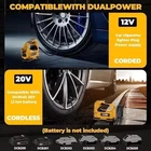 About this item Compatible with Dual Power: The YAWV portable air compressor is compatible with De-Walt 20V max Lithium Battery, powerstack battery, suitable for DCB203、DCB204、DCB206 and more. At the same time, our tire inflator comes with an 11FT long 12V car cigarette lighter plug and supports car power supply, which is perfect for use indoors and during travel. 25 Cylinder Powerful and Fast Inflation: The tire inflator is equipped with a high-performance 550 pure copper motor, which outputs strong power and has a stable air flow of 35L/MIN. It can inflate 215/55 R17 car tires from 0 to 36psi in 4 minutes, and it only takes 1 minute to quickly inflate 29-36psi. , return your tires to their best condition in a short time. Please note that after 20 minutes of continuous use, please allow the air compressor to fully rest and cool down before continuing to use it. Automatic inflation with preset tire pressure: No more manually checking tire pressure or worrying about over-inflation. Our air pump is equipped with an advanced sensing chip so that it has an intelligent preset function and can accurately monitor tire pressure with an error of less than 0.5psi. You only need to set the required tire pressure and the air pump will automatically inflate and stop to ensure that the tire pressure reaches the maximum Best level. Digital Display and LED Lighting: The portable tire inflator is equipped with a high-precision, high-brightness display to help you detect tire pressure in real time. And the air compressor pressure gauge has four display modes, which can display pressure in PSI, BAR, KPA and KG/CM². 4 bright LED lights allow you to use it easily even in the dark. Convenient Storage: The tire inflator has an integrated accessory storage compartment and is equipped with different specifications of valves, compatible with SUVs, cars, motorcycles, bicycles and other sports equipment. The pump tube storage slots designed on both sides of the base allow you to store and carry it easily and concisely. This package includes: YAWV air pump, 12V power cord, three nozzles and a user manual.