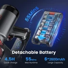 【Powerful Suction for Any Messes】cordless vacuum cleaner S3 equipped with 300W upgraded brushless motor, generating 35Kpa strong suction. It can effectively deep clean dirt, debris, dust, pet hair, cat litter and other messes from hard floor and low pile carpet. Brushless cordless vacuum are long-life and more energy efficient, compared with regular brushed stick vacuum. 【All-in-One LED Display】The intelligent LED display of this cordless stick vacuum provides clear visibility of the battery status and suction mode, helps you monitor the status of the stick vacuum cleaner cordless better, check the battery power in real time, empowering you to stay in control at all times. 【Up to 55 Mins Long Battery Life】With 6 *2600mAh large-capacity rechargeable batteries, this stick vacuum cordless rechargeable provides up to 55 minutes of uninterrupted cleaning (55 mins in Eco Mode, 25 mins in Strong Mode), allowing you to enjoy a hassle-free cleaning experience. The detachable battery of the rechargeable vacuum cordless can be charged separately or on its main body. 【Upgrade Tangle Free LED Flexible Brush Head】The vacuum cleaner pet hair with V-shaped anti-tangle roller can lift embedded dirt and pet hair from carpets and floors, effectively reduce hair entanglement, perfect for pet family. This brush head of vacuum cleaner carpet and floor can be rotated by 90°/165°, no dead corner under furniture and beds. The 4 bright LED lights help you never missing any hidden dust! 【6-Stage High-efficiency Filtration】This cordless stick vacuum cleaner features a lastest 6-stage fully-sealed filtration system, can captures 99.99% of ultra-fine dust and locks in small particles without leakage, expelling fresher air for your family. The cordless vacuum cleaner pet hair with a large capacity dust cup, easily emptied with the push of a button. Note: The HEPA filter is not washable, so be sure to clean and replace it regularly for optimal filtration efficiency. 【Free-Standing & Versatile & Lightweight】Humanized Free-Standing design, this cordless vacuum cleaners for home allowing you to stand anywhere you want. Comes with a dusting brush, long crevice tool and telescopic tube, which can be easily converted into a handheld vacuum cordless to work on the bed, sofa, table, car, RV and hard-to-reach places like ceiling. Lightweight design make operating the lightweight cordless vacuum with one hand effortless. 【Peace of Mind with 2-Year Warranty】Your satisfaction is our top priority. That's why we offer a 2-year warranty, standing by the quality of our product. If you need assistance, we're here to help. Invest in a stick vacuum cordless that not only cleans like a champ but also offers unwavering support.