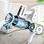 30Kpa Powerful Suction for Quick Cleaning: CBL-K8-6S cordless vacuum cleaner is equipped with a powerful and durable brushless motor, can reach up to 30000Pa suction in Max Mode. Therefore, this vacuum cleaners for home can quickly remove dust, pet hair, debris on the hardwood floor, carpet, tile, stairs to save your time Long Runtime, Clean Uninterruptedly: The stick vacuum cordless rechargeable is powered by a detachable battery pack, can run up to 16 min in Max mode, 40 min in Eco mode. An extra battery pack can be purchased to increase rechargeable vacuum runtime if needed. Please use the original charger for charging as the chargers may not be compatible. Do not charge when using the cordless vacuum cleaner Flexible Floor Brush with LED Headlight: Cordless vacuum’s floor brush can rotate 180° left and right, 90° up and down, making hardwood floor vacuum easy to clean hidden dirt under large furniture and providing illumination Intuitive Display & 2 Suction Modes: The cordless vacuum cleaners for home features an easy-to-read LED display, showing battery level, providing fault alarm, and allowing you to switch 2 suction modes by simply touching. You can monitor the working status of stick vacuum in real time Versatile Accessories & Extension Rod: The lightweight cordless vacuum cleaner comes with a 2-in-1 brush, crevice tool that support turning a stick vac into a cordless handheld vacuum cleaner to clean various household surfaces. And you can adjust the length of the cordless vacuum telescopic rod to 18.9-25.2 inch depending on your height and usage needs High-efficiency Filtration & One-touch Emptying: With 6-stage high-efficiency filtration system, battery powered vacuum effectively captures 99.99% of dust particles as small as 0.1 microns and keep air clean. Furthermore, vacuum cleaner’s dust cup can be empty by one touch for convenience