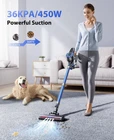 The cordless vacuum cleaner is wireless, giving you the liberty to clean anywhere. Its lightweight and ergonomic design make handling effortless. With strong suction, it cleans diverse surfaces well. Detachable batteries offer long usage. Multiple attachments expand its cleaning capabilities. Compact and stylish, it's a great addition to your home. 【36Kpa Powerful Suction 2 Modes for Cleaning】 Our cordless vacuum cleaner offers 36Kpa powerul suction and two modes (MIN, MAX) to effectively remove dust, pet hair, cat litter, and larger debris from hardwood floors, carpets, and other surfaces. It is suitable for various cleaning needs in different households. 【45Mins Runtime】 Equipped with removable 7*2200mAh lithium-ion batteries, this cordless vacuum cleaner can run for up to 55 minutes in the MIN mode, and 20 minutes in the MAX mode. The stick vacuum features an LED Display that shows the remaining battery power. 【5-Layer High-Efficiency Filtration System】 Utilizing advanced cyclone technology and a high-density mesh structure, our cordless vacuum cleaner achieves a filtration efficiency of up to 99.99%, capturing particles as small as 0.1 microns. With its dual-layer 12-level HEPA filters and sealing system, it effectively traps dust and debris inside the vacuum cleaner while releasing cleaner air outdoors, creating a healthier and cleaner environment. 【Flexible LED Motorized Floor Brush & Versatile Cleaning】: Flexible 180° swivel sideways and 90° up and down lets you clean your home in all directions. 3 LED lights help vacuum cleaner cordless illuminate every dark area track dust and dirt. Equipped with multiple accessories, including a 2-in-1 brush, long crevice, and extensible tube, this excellent cordless stick vacuum can meet various household cleaning demands on stairs and windowsills, sofa and bed, desk and curtain, cars, RV, etc. 【Versatile Attachments and Multiple Usage Modes】 This multifunctional vacuum cleaner comes with various attachments, allowing you to reach under low furniture or clean high places, curtains, ceiling decorations, and light fixtures. It can also be used as a handheld vacuum cleaner for cleaning corners, car seats, stairs, keyboards, and more.