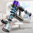 【550W/45Kpa Powerful Suction】Vacuum cleaner has a built-in 550W brushless motor with speed supply up to 300,000rpm, which can provide up to 45Kpa suction power. Easily removes dirt, debris, dust, pet hair, cat litter, pet food and other litter, beating 95% of vacuum on the market! 【Up 60 Mins Run-time】This cordless vacuum provides up to 60 minutes running time in Eco mode. No matter whether it is a 250㎡ large-area house or a complex cleaning task, it does not need to be recharged frequently, so that the cleaning work can be completed in one go, saving you precious time and energy. 【Anti-tangle V-Brush】 Are you still worried about the problem of pet hair in your house? Wireless Vacuum is specially designed for pet families with a V-shaped floor brush, the internal slotted comb teeth can easily solve the problem of tangled hair on the drum. Whether it's carpet or hard floors, it's easy to handle. 【7-layer filtration system & aromatherapy tablet】 The cordless vacuum is equipped with a 7-stage double cyclone system, which can capture 99% of fine particles (> 0.1 micron). Meanwhile, the built-in aromatherapy tablet can emit pleasant fragrance while cleaning, so that your home environment is not only clean, but also full of fresh flavor. [Multiple Accessories &1.5L Dust Cup] The cordless vacuum cleaner is equipped with a variety of accessories to meet different cleaning needs. Whether it's narrow corners, high dust or gaps in furniture, you can find suitable accessories to clean, so that your cleaning work is more comprehensive and thorough. The 1.5 liter dust cup can be cleaned without frequent emptying.