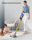 【550W/45KPA Powerful Suction】The cordless vacuum cleaner is equipped with a 550w high-speed motor and a powerful suction of up to 45kpa, which can easily clean large dust particles, deep dust in floor gaps and stubborn dirt deep in carpets. It is a cordless upright vacuum cleaner that meets your different needs 【Max 60mins Running Time】The Cordless Stick Vacuum has a built-in upgraded 2500mAh lithium-ion battery, which can provide up to 60 minutes of continuous operation time in Eco mode, easily handling cleaning tasks up to 280 square meters, and vacuum cleaner for home with ultra-long standby time without frequent charging 【Ergonomic Double Handle Design】The upright cordless vacuum cleaner with ergonomic double handle design can be used with both hands without bending over, reducing the burden on your arms and wrists, and is suitable for people of different ages 【8-Level Filtration System & Built-in Aroma Tablet】The cordless vacuum cleaner adopts an 8-level cyclone multi-cone structure, which can capture dust particles as small as 0.1 microns in diameter and remove 99.99% dust troubles. And it has built-in aromatherapy tablets emit a pleasant aroma when in use, keep the air fresh 【V-Shaped Anti-tangle Floor Brush】This stick vacuum cleaner is equipped with an upgraded new V-shaped anti-tangle floor brush tailored for pet-raising families. The built-in comb structure of the roller brush can cut the hair before vacuuming, which can effectively solve the common hair tangling problem of hardwood floor and carpet vacuum cleaners. It is an ideal cordless vacuum cleaner for pet owners