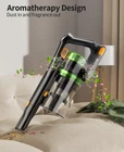 【Green LED Laser Illumination】Upgrade your cleaning routine with the Vacuum Cleaner featuring a green LED brush head. The precise laser makes invisible dust visible on hard floors. 【High Efficiency Filtration & Fresh Fragrance】Advanced whole-machine filtration traps 99.99% of fine dust. It has a built-in aromatherapy tablet that leaves a light fragrance in every room it touches. 【One-pull Dust Cup Emptying】Hygienic bin emptying: No need to touch the dirt. The large 1.5L dust cup capacity holds more trash, reducing the need for frequent emptying. 【Upgraded Battery】The rechargeable battery, built with 8 lithium-ion batteries (2800 mAh), provides up to 60 minutes of fade-free power. Thanks to smart chip protection, it has overcharge and over-discharge protection. Quick 4-hour charging time. 【Strong Suction】Cordless stick vacuum cleaner with a 550W brushless digital motor. It features more power, less noise, and longer battery life. Strong suction for whole-home deep cleaning. Converts to a handheld for cleaning cars, stairs, and upholstery. 【Displays Mode】The cordless vacuum adopts a smart screen, allowing you to monitor the indicators and status of the vacuum cleaner in real-time. Displays power mode, run time countdown, and maintenance alerts. The LED screen shows the 3 suction power modes in real-time.