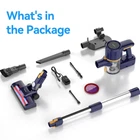 【Efficient Cleaning with 6-Cell Battery】Our N7S stick vacuum cleaner cordless delivers advanced suction technology for effective dirt, debris, and pet hair removal from various surfaces. The 6-cell battery supports a longer runtime. This versatile 6-in-1 rechargeable vacuum cleaner offers powerful suction and long runtime, ensuring a thorough and efficient cleaning experience. 【Multifunction Brush Tools】With 3 accessory tools, this cordless stick vacuum supports 6 different stick vacuum and handheld vacuum cleaning combinations. From hard floors to low-pile carpets, upholstery, and even high and low surfaces, this cordless stick vacuum cleaner is designed to tackle them all. Vacuum cleaner cordless effortlessly adapts to different cleaning needs with its versatile attachments and adjustable settings. 【Versatile, Lightweight, and Quiet】 Weighing only 3 pounds, the lightweight stick vacuum cleaner is super easy to carry around and perfect for everyday use. Its compact design offers exceptional maneuverability, while the 180° flexible extension rod allows easy cleaning in hard-to-reach areas underneath furniture. Plus, its noise reduction feature makes it pet-friendly. 【LED Motorized Brush with V-shape Roller】The cordless vacuum floor brush has a motorized beater roller and front LED lights, providing a better cleaning experience. The roller adopts a V-shaped wave design, picking up dust and dirt more efficiently than the traditional roller. The pre-installed soft roller is suitable for hard surface floors and low-pile carpets, and the stiff roller is ideal for carpeted surfaces. 【99% Efficient Filtration & Extra Filter】Our vacuum features an efficient filtration system that captures and filters microscopic dust particles, promoting a clean and healthy home. The filter and strainer also protect the motor, ensuring peak performance. Remember to clean the filter regularly and replace it when worn out. An extra filter is included for your convenience. 【Easy to Operate & Convenient Storage】This stick cordless vacuum cleaner is easy to operate, one click can start the vacuum and keep it working. Say goodbye to tangled cords as you enjoy cord-free cleaning. The dust cup is easy to empty with just one click, and a wall mount is provided for convenient storage of the vacuum and its accessories. A helpful cleaning gadget is also included to maintain the dust cup and rollers.