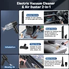 【2 In 1 Handheld Vacuum】This handheld vacuum cordless not just a vacuum cleaner, but also an air duster. The vacuum has a smart design, the front end can vacuum while the rear end can blow dust, which gives you efficiently cleaning experience. Our mini vacuum has suction up to 4500PA, which is enough to meet your cleaning needs for dust, pet hair and some difficult-to-clean debris in the car or home. The cordless vacuum also has an LED light, it allowing you to easily clean dark corners. 【USB Rechargeable and Cordless】Our small vacuum cleaner has built-in 4000mAh lithium-ion battery(2 x 2000mAh battery packs) which can bring more suction power, and adopts 5V/2A adapter can quickly fully charge in 2.5-3 hours. The cordless handheld vacuum design allows you to move freely while cleaning your stairs, kitchen, car or hard-to-reach corners. You can place this portable vacuum cleaner in any storage space. 【Reusable and Washable Filter】This hand vacuum uses a washable and reusable HEPA filter and equipped with a dust collecting cup, which adopts a double buckle design to effectively prevent the dust cup from falling off during use, rotate disassembly after use, quick dumping of garbage, convenient for cleaning and next use. Using tip: If the vacuum filter is full of dirt or suction weakens, please clean the filter in time to make sure the dust buster can work properly. 【Wide Range of Applications】Our car vacuum cordless rechargeable equipped with 5 different nozzles to better meet your cleaning needs. Suction nozzle suitable for dust cleaning of gaps such as doors and seats; Brush has dual functions of suction and wiping, which suitable for dust cleaning on the surfaces of foot pads and keyboards; Floor brush is suitable for dust cleaning of carpet and sofa; Blowing can clean the fine dust in various gaps and can be wiped and blown with a brush. 【Multi-use Hand Held Vacuum Cleaner】This hand vacuum cordless rechargeable is very portable to carry, weighs only 0.73lbs, good ideal for cleaning small crevices, such as sliding doors tracks, windows, drawers, computer hosts, car doors, keyboards, sewing machines, pianos, etc. The dust busters cordless rechargeable can also be used to clean large stains on seats, cars, carpets, sofas, desks and bookshelves etc.