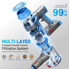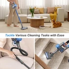 ✨【Powerful Motor 】Cordless vacuum cleaner driven by an enhanced 250W motor, delivering a powerful 35Kpa hurricane suction it easily tackles dust, debris, pet hair, and other messes on hard floors, carpets, or tiles, meeting the comprehensive cleaning needs of various surfaces and scenarios. (NOTE: This cordless vacuum model is designed for low-pile carpets; using it on long-pile carpets may cause the motor to stall or overheat. If this happens, clean the floor brush and the vacuum's air intake). ✨【Multi-Layer Filtration】The floor cordless vacuum's 6-layer filtration system includes a HEPA filter, stainless steel filter, dual cyclonic separation, and an exhaust sponge, effectively capturing 99.99% of dust particles as small as 0.2 microns, effectively prevents secondary pollution and ensures clean, fresh air. Regular maintenance is advised: clean the filters/sponge monthly and replace them every 2-3 months to maintain suction power and prevent blockages. Always remove the filters before washing to prevent motor damage. ✨【Extended Runtime+ LED Display】This wireless vacuum cleaner for home is driven by six 2200mAh lithium batteries, which can be quickly recharged in 4 hours. Cordless vacuum offers a run time of 40 minutes in standard mode. The removable battery features a charge indicator, Smart LED power display can help you check the remaining power at a glance. Convenient for you to know the usage and charge in advance, cordless vacuum solve your cleaning troubles anytime, anywhere. ✨【8-in-1 +Lightweight】Our cordless vacuum for home is an all-in-one cleaning tools, featuring a telescopic tube, flexible hose, and three practical attachments: a main floor brush head, a 2-in-1 brush, and a crevice tool. With the extended tube and main brush, it transitions seamlessly from hard floors to low-pile carpets. Whether it's narrow corners, high dust or gaps in furniture, you can find suitable accessories to clean, The stick vacuum cleaner rechargeable weighs only 2.8 pounds, ensuring ease of use for extended periods. ✨【Bendable+Easy Maintenance】cordless stick vacuum cleaner flexible swivel head rotates 0° to 180° sideways and 0° to 90° up and down, effortlessly reaching under furniture and into corners. Front LED lights illuminate the cleaning path, revealing hidden dust and debris. With a modular design dust cup empties with a single click, detachable components ensure easy cleaning and maintenance, saving time and effort. The self-standing design allows for hands-free relaxation whenever cleaning fatigue sets in. ✨【Lifetime Customer Service】Don't worry, our provides customers with a 3-years return and exchange service + 7*24-hour After-sales Service. If there are any product quality issues, we will provide replacement parts, you can contact our customer service staff at any time through the store window, we are here to assist you.