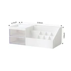 Material: Makeup organizer is made of ABS plastic. Easily Find What You Need: Makeup Organizer with 10 Compartments and 2 Transparent Drawers. Size: 9.6*4.7*3.6 inches. Versatile Design: This Desktop storage is not only perfect for storing your makeup brushes, nail polishes, Liquid Foundation, lipsticks and other small personal items but also great for storing your desktop stationery such as paper clips, pencil, scissors, binder clips and many other office supplies; you can put any other daily necessities on the Desktop storage. Widely Used: Fits Bedroom Countertop Bathroom and office, especially the makeup table.