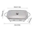 Countertop Chafing Dish, Buffet Set Warming Tray, Buffet Server Tempered Glass Welcome to our store^-^ Description This chafing dish with a stainless steel frame, clear tempered glass container, two fuel holders, and flat bottom features high-temperature resistance , even heating, stable structure, fashionable look, and effortless cleaning. It can keep your food warm and delicious for a period of time, making it an ideal choice for restaurants, hotels, and various parties. Key Features High-quality Material: With the stainless steel frame and non-toxic tempered glass food container, our product features high-temperature resistance, scratch resistance, corrosion resistance , and high hardness, and is safe for food-containing, ensuring a long service life. Stable Structure: The frame is specifically designed for the food container, holding its protruding edges, keeping it stable and safe. Keeping Food Warm: With two welded fuel trays, you can add two short candles(not included) or alcohol solid fuel(not included). The flat bottom provides it with an even heating effect, keeping your food warm and delicious for a period of time. Fashionable Design: Its glossy surface and kitchen cart outlook make it not just a nice food container but also an excellent decoration in your kitchen or restaurant. Appropriate Volume: The 0.5 gal volume holds enough place for one fancy meal, meeting the needs of multiple individuals. Effortless Cleaning: Due to the tempered glass and smooth surface, food residues and oil are hard to stick on the container, so you can easily clean it with water or a damp cloth. Clear Design: The clear glass allows you to directly see the food condition in the container, avoiding undercooking or overcooking, so you can eat with confidence. Customer Service: We aim to provide quality products and services. If you have any problems, please feel free to contact us. We will reply and solve the problem for you as soon as possible. Details Strong Handles: They are farther away from the container so they will not easily get too hot and allow you to lift the container easily. Practical Lid: The lid with a handle effectively reduces dust and insects from entering the container and is also easy for you to open and close. Round Corners: Compared with traditional square corners, an arc design can better ensure safety during use. Anti-Slip Foot: The four circular anti-slip feet at the bottom can further maintain the stability of the product on the countertop. Application It is widely used in hotels, restaurants, buffets, weddings, parties, banquets, and family dinners, and is suitable for cooking in microwaves and ovens. Specifications Color: Silver Material: Stainless Steel, Tempered Glass Style: Modern Shape: Rectangular Mount Type: Countertop Process: Welding Assembly Required: No Capacity: 2L/0.5Gal Number of Items: 1 Product Size: 38*18.8*12cm/14.96*7.4*4.72inch Lid Size(L*W): 28.6*18.8cm/11.26*7.4inch Packaging Size: 44*24*13cm/17.3*9.4*5.1inch Gross Weight: 2.3kg/5.07lbs Net Weight: 2kg/4.4lbs Package Included 1*Chafing Dish Notes Please check the size carefully before ordering. Please note that food is not included, and please do not wash our product with a washing machine. Please allow the slight color difference caused by the shooting light and 1-3cm error due to manual measurement, and make sure you do not mind before you order. Payment Delivery details Terms of sales About us Contact us Payment We accept ebay payment 。 Fees such as import duties, taxes are not included in the item price or shipping costs. These charges are the buyer's responsibility. Delivery details Shipping: 2-9 working days to: USA Terms of sales We maintain high standards of excellence and strive for hundred percent customer satisfaction. Feedback is very important to us. We hope that you contact us immediately before you give neutral or negative feedback, so that we can address your concerns. It is impossible to address issues if we do not know about them! About us Your satis faction is our ultimate goal. We work hard to earn your trust and future business. Our certified technicians have tested each item before shipping. The unit comes with 1 year limited warranty on all manufacturing defects. a) If you receive a defective item, you may return it or ask for a discount. Please contact us within 14 days after you receive the package. b) What you returned must be intact and in its original packaging as re? u. Customer is responsible for shipping costs of the returned item. c) We will cover the cost of shipping back t with the shipping rate indicated in the registration page. We will send you a new unit or refund the full payment you paid. Thank you. Contact us Business Hour Business Hour: Monday To Friday: 8:30 AM to 5:00 PM (Beijing China time) Due to time zones, our reply to your questions may not be immediately. But within above working time, we will reply your email within 24 hours. If it's non-workdays, please kindly be patient and wait till Monday. Please contact us with ebay message. Please feel free to contact us if you have any questions. Monday To Friday: 8:30 AM to 5:00 PM (Beijing China time) Due to time zones, our reply to your questions may not be immediately. But within above working time, we will reply your email within 24 hours. If it's non-workdays, please kindly be patient and wait till Monday. Please contact us with ebay message. Please feel free to contact us if you have any questions. On Dec 9, 2024 at 19:34:55 PST, seller added the following information: