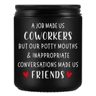 Coworker Candle - Hilarious Coworker Gifts for Women Men, Office Gifts for Coworkers - Fun Coworker Gifts - Funny Coworker Leaving Gifts, Coworker Birthday Gifts for Friend Colleague Co-worker Humorous gifts for coworkers; With saying "A job made us coworkers, but our potty mouths & inappropriate conversations made us friends", this candle becomes a funny coworker gift, especially someone is easy to get a giggle; Great for coworker friend, coworker, colleague, co-worker, co worker, special coworker, best friend, work bestie, work friend, boss, work mate Great for a good laugh for many occasions; Perfect gifts for coworkers finally turned into best friends; Great coworker leaving gifts, going away gift for coworker, coworker birthday gifts for women men, coworker christmas gifts, thank you gifts for coworkers, appreciation gifts for coworkers, office gifts for coworkers work bestie, farewell coworker gift, goodbye gifts for coworkers, work gifts for coworker, coworker gift idea, work friendship gifts Vintage Leather fragrance: Full of a calming scent, the scent of candle can purify the air in your home, bring you relief. Ideal gifts for yoga, working, sleeping, bathing 100% natural soy wax: Made from natural soy wax, our aromatherapy scented soy candle provides a slower and cleaner burn than paraffin, which is environmentally friendly, burns more sufficiently and longer 50 hours burning time: 9oz cotton wick scented candle will burn for approximately 50 hours in typical conditions. Hand poured in a reusable glass jar