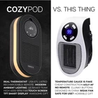 PLUG IN PORTABLE HEATER FOR SMALL SPACES: CozyPod weighs under 2 lbs and is the perfect plug-in heater for instant warmth on the go. With a compact, adjustable head it can be positioned vertically or horizontally, making it a cozy fit for small rooms, RVs, office desks where you need a wall plug heater. MINI SPACE HEATER WITH LED DISPLAY & REMOTE: CozyPod’s TFT touch display and Apple Watch-inspired rechargeable remote make temperature, timer, and LED night light adjustments easy from across the room. With no batteries required, this plug in heater is the one-stop heater for every space. ENERGY-EFFICIENT WALL OUTLET HEATER: With four brightness settings, an Eco Mode, and a 12-hour timer, the CozyPod heater plug lets you customize the warmth in small spaces up to 150 sq ft. This both maximizes comfort and saves on energy costs all year round. SAFETY FIRST WALL SPACE HEATER: The CozyPod plug in heater for indoor use is crafted with fire-retardant materials and complies with ETL safety standards. Its cool-touch exterior, and auto shut-off giving you that much needed peace of mind when you need it most. IDEAL FOR COZY SPACES: Designed for modern living, CozyPod is made for small homes, apartments, RVs—or anywhere you want to feel warm and snug. No matter if you’re city living or on the road, simply plug it in to enjoy ultimate coziness right where you are. The CozyPod small outlet heater has a compact design to keep it out of the way but always within reach, creating the perfect sanctuary in spaces under 150 sq ft.