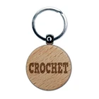 Crochet Fun Text Engraved Wood Round Keychain Tag Charm