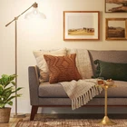 •Schoolhouse floor lamp with glass bell shade •Features an adjustable arm and shade •On/off switch for easy operation •Antique brass finish Description Upgrade your everyday lighting with this Crosby Glass Shade Floor Lamp from Threshold. This schoolhouse floor lamp in an antique brass finish is well suited for a wide range of aesthetics. It features a slim stand with a round pedestal base. The adjustable arm and downward-facing glass bell shade let you adjust the light to your needs, while the rotary switch makes it easy to turn on and off. Place it next to your sofa in your living room, office or reading nook for practical illumination. Threshold: Quality & Design / Casual classics for house and home. Includes: 1 Floor Lamp With Shad Shop Our Store Contact Us Add to Favorite Sellers Crosby Bell Glass Shade Floor Lamp Brass - Threshold Product Details •Schoolhouse floor lamp with glass bell shade •Features an adjustable arm and shade •On/off switch for easy operation •Antique brass finish Description Upgrade your everyday lighting with this Crosby Glass Shade Floor Lamp from Threshold. This schoolhouse floor lamp in an antique brass finish is well suited for a wide range of aesthetics. It features a slim stand with a round pedestal base. The adjustable arm and downward-facing glass bell shade let you adjust the light to your needs, while the rotary switch makes it easy to turn on and off. Place it next to your sofa in your living room, office or reading nook for practical illumination. Threshold: Quality & Design / Casual classics for house and home. Includes: 1 Floor Lamp With Shade, Light Bulbs Not Included Weight: 16.5 Pounds Finish: Brass Plated Shade Shape: Bell Lighting Body Material: Metal Lighting Shade Material: Glass Bulb Base Size: Standard Edison Medium Screw Base E26 Features: Adjustable Arm Cable/Cord Length: 5 Feet Assembly Details: Adult Assembly Required, No Tools Needed Base Dimensions: 1.5 Inches (H) x 11 Inches (W) x 11 Inches (D) Assembled Dimensions: 57 Inches (H) x 11 Inches (W) x 26.6 Inches (D) Shade Dimensions: 5 Inches (H), 10.25 Inches (W-top), 10.25 Inches (W-bottom) Cord Covering: Plastic Number of Light Bulb Sockets: 1 Maximum Light Bulb Wattage: 40 Watts Industry or Government Certifications: ETL Listed Lighting Switch Type: Turn Knob Rotary Switch Number of Lighting Shades: 1 Shade Bottom Depth: 10.25 Inches Shade Top Depth: 10.25 Inches Product warning: lighting: Use Only Non-Dimmable Bulbs Light settings: 1-Way (On Off) Switch Location: Lamp Socket Battery: No Battery Used Payment For fixed priced listings, Buy it Now and Best Offer, payment is required at the time of purchase. We accept PayPal and credit cards via PayPal. We make every effort of shipping within 1 business day of payment clearing. All payments must be through PayPal, utilizing eBay checkout. For auction listings, payment is required within two (2) days of purchase. Any items not paid within two (5) days will risk the product being re-listed and sold to another buyer. Taxes - US We collect sales tax, as required by law. Please see the Shipping and Payments tab for more information. Shipping For fixed priced listings, Buy it Now and Best Offer, payment is required at the time of purchase. We accept PayPal and credit cards via PayPal. We make every effort of shipping within 1 business day of payment clearing. All payments must be through PayPal, utilizing eBay checkout. For auction listings, payment is required within two (2) days of purchase. Any items not paid within two (2) days will risk the product being re-listed and sold to another buyer. Policies If you do need to return your item, please contact us via phone or email (you will receive an email when your product ships with additional details - Subject: Important information about your purchase from Bullseye Deals). You will then be provided with a return shipping label and packing slip. Pack the item carefully. Include the packing slip, apply the shipping label, and return the item within 5 business days of the date you request a return. You must return the item within 5 business days of requesting the return, or your return will be canceled. Once we receive your order we will inspect the return. Please allow up to 5 business days of receiving the returned item for your refund.