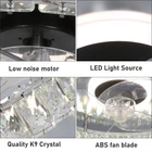 【Ceiling Fans with Lights】 Built-in LEDs light source(800K-6500K), can freely adjust the color temperature and brightness by the remote control. Power: 30W, with timing function. 【Low Profile Ceiling Fans】 Size: Diameter 18.8 inch (48cm), height 4.5 inch; Voltage:85-265V; 1 remote control, DC motor and 3 blades, applicable area 10-20㎡. 【Mute Motor and Timing】 The pure copper silent motor of the crystal ceiling fan runs smoothly without making noise, and the night mode and timing mode provide you with a quiet and comfortable sleeping environment. 【Forward and Reverse Mode】 Freely change the direction from downdraft mode during the summer to updraft mode during the winter. The ceiling fan can be used all seasons. 【Easy to Install】 Instructions and all mounting hardware are included for your easy installation. If any questions, please feel free to contact us.
