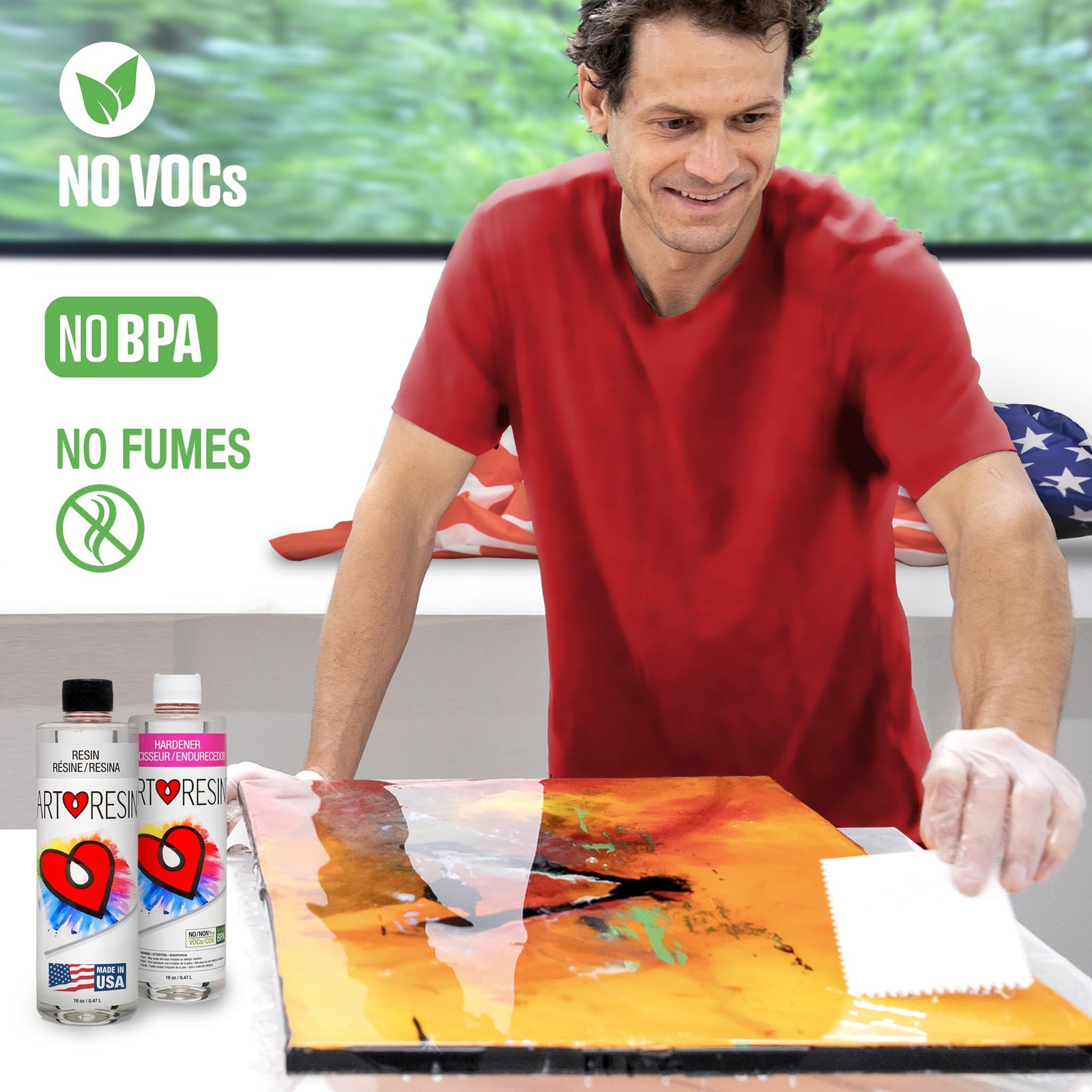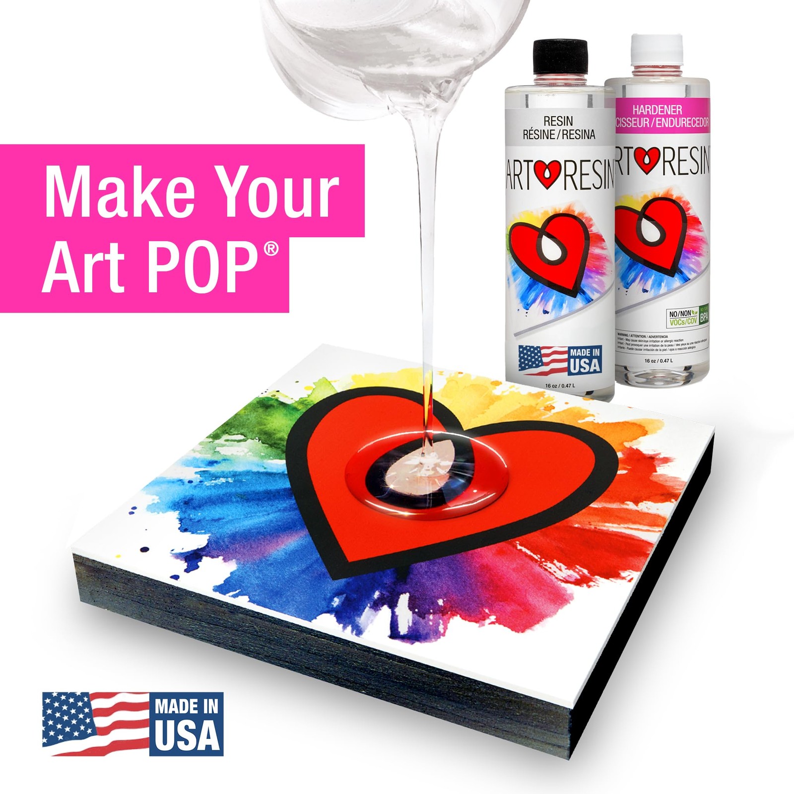 For over 10 years, has been the trusted choice of artists worldwide for its thick, glossy finish that enhances and protects creative projects. Made for artists by artists, it's easy enough for beginners to use while delivering professional-quality results. 's non-toxic, low-odor formula is certified safe for home use and food safe when used as directed. With built-in UV stabilizers, it can be applied as a crystal clear coat for artwork, photos, and wood, tinted with colorants for fluid art or ocean-inspired designs, or poured into molds to create coasters, jewelry, and other resin crafts. Made in the USA for quality you can trust. Includes: 16 oz resin, 16 oz hardener, and step-by-step instructions. Coverage Area: Up to 8 sq ft—perfect for projects up to 30” x 40. Coverage Area: Up to 8 sq ft—perfect for projects up to 30” x 40. Safe for Indoor Use: Non-toxic, low odor, no VOCs, non-flammable, and food safe. Designed for Art: Made in USA, delivering a thick, glossy, crystal-clear finish with UV protection.