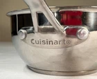 Cuisinart Pour Saucier Model #735-160P, 1 Qt / .95 L Stainless Steel Pot / Pan. This sauce pain is in good condition with minimal wear. Please review the pictures because they provide most of the description and information about condition. Additional information on underside of pan reads: V#17550M 0814 Dimensions: Length: 13 in, including to tip of handle Diameter across the top: 6 3/4 in Diameter across the base: 4 in Height from base to top of pan: 3 1/8 in Height from base to top of tip of handle: 4 1/4 in Weight: 17.8 oz (1.1 lb) No lid included.