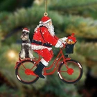 Cute Schnauzer Santa Claus Riding A Bike Dog Christmas Ornament
