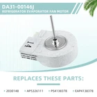 【Fixes the Issues】: When the temperature of your refrigerator or freezer rises, the cooling is not good, the refrigerator is not cold enough/not cooling, or the fan cannot operate due to aging, damage, etc., Just replace the refrigerator evaporator fan to help you solve all problems. 【Replaces Part Number】: Replacement part No. DA31-00146J Evaporator Fan Motor / BLDC DREP5020LD 1920RPM DC12V 2.8W 0.23A 3Pins. This DA31-00146J replaces: DA31-00146C PS4138377 AP4444609 2030147. 【Note】 Please carefully check all pictures and part numbers in the listing to make sure it's the correct product you need. If you are not sure whether this part fits your model, please contact us before purchasing. 【Premium Quality】: The freezer fan motor replacment part by QINIZX is made of high-quality metal and plastic and well-tested by the manufacturer, Ensure long-lasting and effective performance. Motor Dia. is 2.36", Motor length is 3.03", Motor Thickness 0.81"; Shaft length is 0.25"+1.61", 1/8" diameter shaft. 【Perfectly Compatible】: This Fridge Evaporator Fan Motor compatible with Samsung Refrigerator and other major brands freezing fan motor, Compatible part numbers 2030148 PS4138378 AP5326111, etc. 【Easy to install】: You can easily find the installation method by searching the online video site for the part number. SAFETY FIRST. Dry hands, away from water source, powers off. Take a clear picture of and around the part your are willing to replace for easier replacing. Save your time and money by choosing our Ultra durable high-quality goods with better price and by replacing it easier. Product Description Package Included: 1x DC Fan Motor Specifications: Voltage: DC12V Current: 0.23A Watt: 2.8W RPM: 1920 Pins: 3 Parts Number: DA31-00146J(#14), Replaces 2030148 PS4138378 AP5326111 Compatible with Samsung refrigerator: (Ctrl+F to Search Model) RS263TDBP/XAA, RS263TDRS/XAA, RS263TDWP/XAA, RS263TDRS/XAC, RS263TDPN/XAA, RS265TDBP/XAC, RS265TDRS/XAC, RS265TDWP/XAC, RS267TDBP/XAC, RS267TDRS/XAC, RS267TDWP/XAC, RS25H5111BC/AA, RS25H5111SR/AA, RS25H5111WW/AA, RS25H5121BC/AA, RS25H5121SR/AA, RS25H5121WW/AA, RH25H5611SR/AA, RH25H5611BC/AA, RH25H5611WW/AA, RS25H5111SG/AA, RS265TDBP/XAA, RS265TDWP/XAA, RS267TDPN/XAA, RS267TDWP/XAA, RS265TDPN/XAA, RS265TDRS/XAA, RS267TDBP/XAA, RS267TDRS/XAA Please carefully check all pictures and make sure this parts DA31-00146J is the correct product you need.
