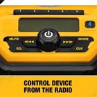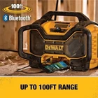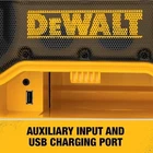 Product Description The DCR025 DEWALT radio charger is designed to be the most versatile Jobsite Radio Charger on the market. The unit is able to run off and charge DEWALT slide pack battery packs including 20V MAX* and FLEXVOLT 20V/60V MAX* at 3 AMPs when plugged into an AC outlet. The bluetooth radio speaker is designed to include woofers, tweeters and air ports to provide clear and rich sound at all volume levels. An over sized device storage box protects devices from worksite conditions and includes an Aux and 2.1 AMP USB charging port for convenient device charging. 2 AC Power outlets on the side of the unit allows you to plug in additional tools or chargers without occupying additional outlets on the wall. AVRCP (Audio Visual Remote Control Protocol) allows you to control your device from the radio interface so you can keep the device in a safe place and skip to the next song or hit replay on the radio interface. Product information Product Dimensions 11 x 13.6 x 19 inches Item Weight 15 pounds ASIN B01H9BLN3K Item model number DCR025 Batteries 1 Lithium Ion batteries required.