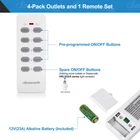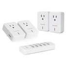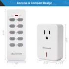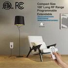 Dewenwils New Design 100' Range Remote Control 4 Outlets Set, ETL Listed Specifications: Input Voltage: 125VAC, 60Hz Max Power Rating: 10A / 1200W Remote Battery: 23A, 12V Transmission Frequency: 433.92MHz Remote Control Distance: 100 Feet (Free Area) Package Includes: 4 x Remote Control Receivers 1 x Remote Transmitter 1 x 23A 12V Battery (Installed) 3 Prong Space Saving Outlet Plug No More Bulky Remote Outlet Plugs New design compact size wireless remote control electrical outlet switch in minimalist design style takes up 1 wall outlet only and fits for any room décor easily. 12V 23A battery is included. Note: Please remove the battery insulation from the remote switch before using. Customize Your RF Remote System Programmable & Expandable Allow you to add extra handheld remotes, outlets and light sockets (The same model from Dewenwils only). Provide more flexibility to expand your remote system freely. Home Automation Turn on/off hard to reach switches by just clicking a button. Perfect for lamp, ceiling lighting, Christmas tree, holiday decoration, fan, and other electrical devices. Remote and outlet have been pre-programmed for immediately use. Quick to install with tool-free set-up and battery included. Simple and easy to operate, save your time and effort! Notes: Keep in mind this switch is turning the power on and off, not fit for devices with electronic switches. 100 FT Remote Control Range in Open Area No requiring line of sight between the remote and receiver. Strong radio frequency transmission works through walls and doors. The wireless range may be shortened by electronic devices, walls, or other physical barriers, the distance may be slightly less than 100 ft in actual use. Make Your Life Easier and Comfortable Simplify your life by remotely controlling household appliances with a remote controller. Conquer hard-to-reach outlets; operating electrical appliances in hard to reach areas from anywhere in the house whenever you want. Perfect for the elderly, pregnant woman and those with limited mobility or back pain; make your life convenient, safer, and energy efficient. Get Rid of Troublesome and Unstable WIFI Control Switches / Light Bulbs No complicated setting up needed and do not need to worry about the strength of WIFI signal.