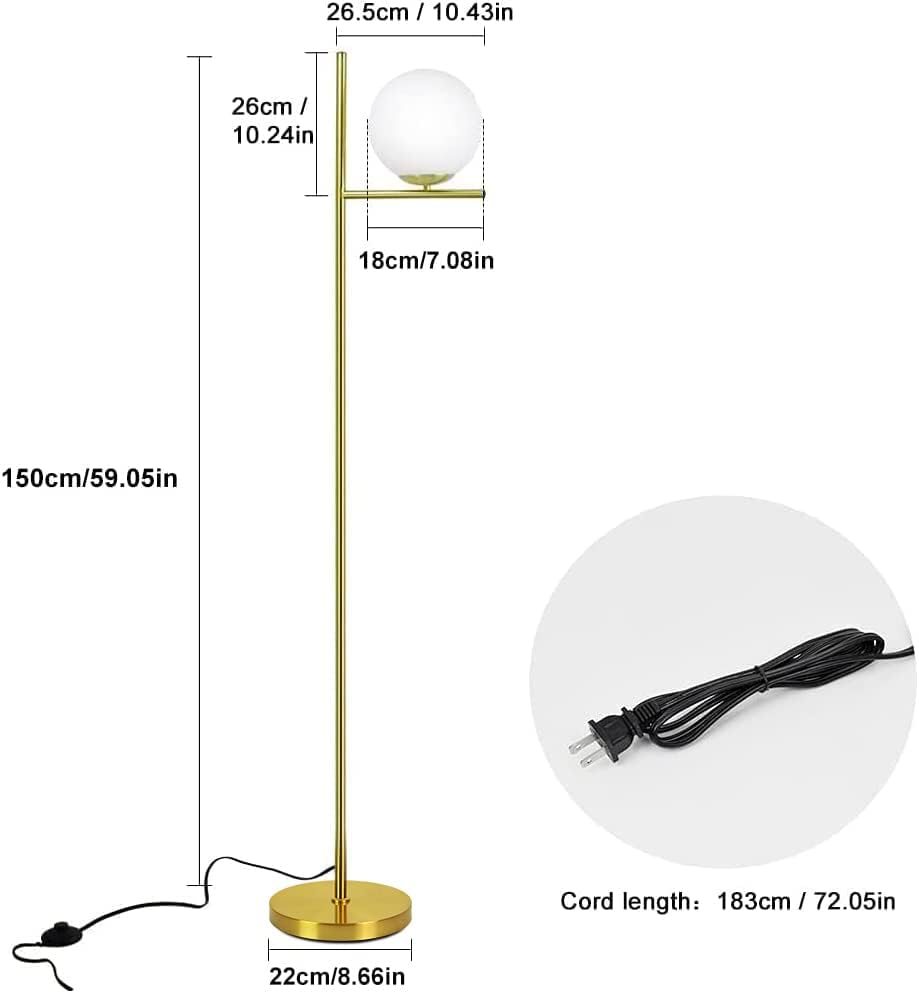 Store New Arrivals Add to Favorite View Feedback Contact DLLT LED Frosted Glass Globe Floor Lamp-9W Standing Lamps for Modern, Mid Century Contemporary Rooms, Energy Saving Tall Pole Accent Lighting for Living Room, Bedroom, Office, Gold Description Item model number PY-F1036G Light Source Type LED Style Modern Number of Items 1 Power Source Plug-in Powered Number of Light Sources 1 Control Method Touch Switch Type Foot Batteries Included? No Lighting Method Uplight Mounting Type Pole Mount Lamp Type Floor Lamp Number of Pieces 1 Room Type Office, Bedroom, Living Room Bulb Shape Size A19 Installation Type Freestanding Product Dimensions 8.66"D x 8.66"W x 59.09"H Material Glass, Metal Efficiency [HIGH] Controller Type Foot Control Finish Type Gold Indoor/Outdoor Usage Indoor Brightness 720 Lumen Is Waterproof False Water Resistance Level Not Water Resistant Batteries Required? No Item Weight 7.73 pounds Connectivity Technology USB Special Features Energy Efficient, Lightweight Special Feature Energy Efficient, Lightweight Part Number WS-MNF12-60B Shade Color White Color Temperature 3000 Kelvin Color Sphere-Gold Wattage 9 watts Is Cordless? No Base Material Glass Bulb Base E26 Shape Round Voltage 120 Volts Recommended Uses For Product Decoration, Reading, Everyday Use Shade Material Glass Finish types Gold Included Components Bulb Size Sphere-Gold FROSTED GLASS LAMPSHADE: Selected high quality material, this modern floor lamp gold have great light transmission, create a warm and comfortable atmosphere for your home. The convenient foot switch allows you to tap the lamp on or off with your foot. ELEGANT & UNIQUE DESIGN: Our globe floor lamps brass has a stable base to provide maximum stability, so that it would be free and safe around children and pets.In addition, Lunar frosted glass with high light pole, looks very elegant that is a very good decoration in the home. E26 TYPE BASE: This gold stand up lamp includes 9 watt LED light bulb, 3000K (Warm White), the brightness is 720 lumens, it not only provides sufficient brightness, but also has a eye caring function while you are reading or working, you never have to replace a bulb and save more energy in comparison to halogen or incandescent bulbs.(bulb can be replaced with other bulbs, 60watt max) EASY TO INSTALL: The tall pole lamp is easy to install quickly, and all instruction manual included with the package.Please be careful because glass is fragile. It perfect for your living room, bedroom, office, nursery and kids room as Christmas & New Year gift. SATISFACTION GUARANTEE &AFTER SALES: We offer a full 12 months quality assurance, 30 days refund for quality. if you have anproblem of your floor lamp, please feel free to contact us because our service purpose is to satisfy and we are committed to making it right to you. Product Description Depuley Tall Standing Pole Light for Living Room Customer's Feeling: 1. Easy to put together in about 3 minutes and came with a great LED lightbulb. 2. Love this floor lamp! Looks great, plenty of light, great addition to the room...and the dog LOVES the foot pedal switch! 3. Perfect for a 200 sq. ft. office space. 4. Modern and sleek floor lamp. Great value and they really brighten the living room. 5. Very cute and perfect for turning on in the middle of the night for our nursery! Glass Globe Floor Lamp - A romantic valentines day gifts Frosted glass globe lamp shade: Selected high quality material, this floor light has great light transmission that could create a warm and comfortable atmosphere for your home. NOTE: Glass is fragile, not bump, not tap. This trendy dome lamp includes 9 watt LED light bulb, equipped with USA standard medium E26 base socket, up to 60W, which is compatible with all kinds of bulbs: LED, INCANDESCENT, CFL, RGB, Halogen, Vintage Filament. Foot Switch: With the design of foot pedal style, our tall floor lamp is more convenient to switch the light on/off, saving the trouble bending down. Round Metal Base: This lunar standing floor light has metal base, which is more stable and not easy to fall down, safer to children and pets. Specification: Voltage: 120V Bulb Type: E26 bulb( included 9W bulb) Material: Glass+Metal Product size: 60in*9.6in Color: Brass Gold Switch: Foot switch Lampshade Material: Glass ABOUT US We offer the best prices around on high quality products. Our E-store includes media such as books, movies, music and games while offering electronics, toys, sporting apparel, clothing, tools, general home, garden items and more. SHIPPING We are always working hard to ensure your package arrives as soon as possible. Please understand that some factors like weather, high postal traffic, and the performance of shipping companies are outside of our control. We offer free shipping to the lower 48 states and ship within 2 business days of payment, usually sooner. We do not accept P.O. Boxes. Please provide a physical address. For shipping outside of the continental USA, we only use eBay's Global Shipping Program.The item is shipped to KY and then sent to the rest of the world. International customers are responsible for all duties and taxes. Continue to check out in order to calculate costs for shipping the item to your country. Messages regarding eBay's Global Shipping Program MUST be directed at eBay EXCLUSIVELY. RETURNS We offer a 30-Day Return Policy on items which you are not completely satisfied with. You have the option for a full-refund or an exchange of the item. No returns are available on items shipped outside of the USA. PAYMENT We accept PayPal. CONTACT US This page content is yet to come Please ad us to your favorite seller and visit again later Thank You CUSTOMER SATISFACTION We try our very best to make sure every customer is completely satisfied. If there's a problem, message us! We're happy to help.