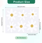 Daisy Flower Wall Stickers, 36 Pieces Decor Boho Decals White Product Details Brand: Styquenzer Color: White Item dimensions L x W x H: 11.81 x 9.06 x 0.39 inches Recommended Uses For Product: Wall Theme: Floral Special Feature: Lightweight Number of Pieces: 36 Style: Art Deco Age Range (Description): Adult Reusability: Reusable Surface RecommendationMaterial: Walls, Glass, PlasticPVC ShapeUnit Count: Irregular36.0 Count Product Quantity: This pack contains 6 sets of vinyl daisy wall stickers, each set has 6 individual white daisies, a total of 36 vibrant stickers, measuring 7.6x8 cm. Waterproof Material: Made of high-quality vinyl, these daisy decals are durable, waterproof, stain-resistant, oil-resistant, and easy to clean. The anti-glare matte finish reduces eye fatigue. Easy Installation: Easily install the flower wall decals- no tools required. Simply peel and stick on a clean, flat surface, its removable nature allows for repositioning without leaving residue. Perfect for quick and easy redecorating. Versatile Design: White daisies bring a touch of nature to any environment. These daisy wall decor are versatile and can be applied to walls, windows, furniture, and a variety of surfaces, turning your space into an enchanting outdoor paradise. Wide Application: This decorative wall sticker is suitable for a variety of dry, flat and clean surfaces such as walls, tiles, glass, and plastic. Perfect for decorating bedrooms, nurseries, bathrooms, schools, and offices, it is a versatile choice for girls and toddlers' spaces. Product name: 36pcs daisy wall stickersMaterial: PVCSize: 9.1x8.8cmPacking list:36psc White Flower Wall Decor