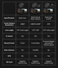 Product information: About this item Dash Cam Front and Rear-1080P & 720P: ThiEYE dash cam equipped with 3”IPS screen 1080P front Full HD resolution and 720P waterproof rear recording monitor the roads ahead and behind the car simultaneously in super clear definition G-sensor & Emergency Lock: Built in G-sensor, when a sudden shake or collision occurs, It will start to record and protect automatically. These videos will be locked and won't be overwritten by the loop recording function. Keep you away from driving dispute 170°Wide-angle & Excellent Night Vision: Car dash camera combined with 170°super wide-angle F1.8 aperture and wide dynamic range(WDR)/HDR ensures the clarity of images at night even though in low-light environments Multifunctional dash cam: ThiEYE Dash cam is multi-functions: G-sensor, parking monitoring, loop recording, motion detection, HDR, etc. The dashboard cam versatile brings you a wonderful and safe driving experience Easy installation : It comes with a 3M sticker mount and Sucker Mount for simple and safe installation. Packing list: Specification 1: (Dash cam) Dash cam x 1 Suction Cup Mount x 1 3.5M Car Charger x 1 Plastic Crowbar x 1 User Manual x 1 Specification 2 : (Dash cam + Rear Camera) Dash cam x 1 Suction Cup Mount x 1 3.5M Car Charger x 1 Plastic Crowbar x 1 User Manual x 1 Rear Camera x 1 3M Glue for Rear Camera x 1 Rear Camera Screw x 2 6M Rear Camera Cable x 1