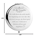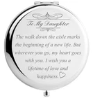 Daughter Wedding Gift from Mom Dad, Bride Gifts for Wedding Day, Engraved Makeup Mirror for Wedding Keepsake (Daughter Wedding Day Gift) Product Details Pattern Name: Daughter Wedding Day Gift Brand: DIDADIC MPN: MIR19 UPC: 194358028165 EAN: 0194358028165 Brand: DIDADIC Shape: Round Product Dimensions: 2.79"L x 2.55"W Frame Material: Metal Mounting Type: Tabletop Mount Brand: DIDADIC Shape: Round Product Dimensions: 2.79"L x 2.55"W Frame Material: Metal Mounting Type: Tabletop Mount Finish Type: Plain Surface Recommendation: Table Special Feature: dual_sided, magnifying Color: Silver Theme: Wedding Specific Uses For Product: [INFERRED: Personal grooming, Wedding day preparation] Number of Pieces: 1 Number of Items: 1 Material: alloy Frame Type: Framed Item Weight: 3.1 Ounces Assembly Required: No Frame Color: Silver Manufacturer: V-SPORTS Size: 2.8"L x 2.6"W UPC: 194358028165 Item Weight: 3.1 ounces Item model number: MIR19 Date First Available: July 8, 2019 Daughter Wedding Day GiftQuality makeup mirror laser crafted with words To My Daughter: The walk down the aisle marks the beginning of a new life; But wherever you go, my heart goes with you; I wish you a lifetime of love and happiness Best Bride Gift for Wedding Day Best bride gift ideas for wedding day; Fashionable and trendy wedding accessory from mom and dad; Wedding keepsake present from parents DIDADIC USA Gift BrandDIDADIC creatives novelty travel mirrors with amazing sayings that make funny gifts for women, mom, daughter, sister, grandma, aunt, wife, girlfriend, mother, teacher, coworker, boss etc Daughter Wedding Day GiftQuality makeup mirror laser crafted with words To My Daughter: The walk down the aisle marks the beginning of a new life; But wherever you go, my heart goes with you; I wish you a lifetime of love and happiness