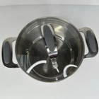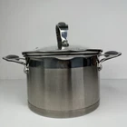 David Burke 3 Quart Tall Casserole Pot with Lid Pour Spout Straining Lid Silver In good pre-owned condition. Stainless Steel w/ Silicone Handles 2 Pour Drain Spouts