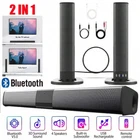 Feature: Innovative Detachable Design The detachable speaker design gives you the versatility in placing one speaker in a horizontal layout at the base of your TV or as two separate free standing vertical speakers. Louder and Crisper Enjoy a louder and crisper audio experience which your TV can't deliver. Wired or Wireless Connections Compatible with your TV, Phone, Laptop, Echo thanks to Bluetooth or wired connections that include 3.5mm audio cable, USB, RCA cable, also with TF card playing function. Flexibly Placing Fashion and portable design suits any home decoration. Bluetooth input and TF card input for savoring your stereo music good time everywhere. Easy to Control and Operate It features LED indicator light and sensitive button, much easier for users to operate. 4 Full Range High Quality Speaker Completes your home theatre system and brings the great bass, provides you a loud and clear surround audio experience in the bedroom and living room. Function: Use Bluetooth V5.0 version USB interface, U disk audio input function TF card audio input function 3.5mm audio input FM radio function Adopt Type-C charging port Can control the volume addition and subtraction Can control the song up and down Can control the pause and play of songs Connect to computer and TV Specification: Bluetooth version: 5.0 SNR: -80dB Output power: 5W x 4 Frequency response: 20Hz - 20KHz FM Frequency:87.5Hz-108Hz Transmission power: 1.49mW Transmission frequency: 2.48GHz Bluetooth distance: 8 - 10m Charging time: 2 - 3 hours Standby time: 120 hours Charging plug: TYPE-C Charging voltage: 5V/1A Bluetooth profiles supported: A2DP, AVRCP, HSP and HF Battery Capacity: 2000mAh (built-in) Package weight: 2.7lbs Product Size(L x W x H): 40 x 14.5 x 7cm Scope of Application: Smart Devices with Bluetooth, TVs, Computers, etc. Package List: 1 x Speaker 2 x Base 1 x USB Cable 1 x RCA Cable 1 x Audio Cable 1 x User Manual in English