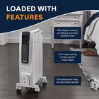 De'Longhi Dragon Digital Oil Filled Radiator Heater, 1500W Electric Space Heater for indoor use, programmable timer, Energy Saving, full room heater with safety features TRD40615E From the inventors of the oil filled category comes a revolutionary new design that effectively and efficiently heats room air by convection and also has 25% more radiant surface to quickly heat people in the room. The new heater design features thermal chimneys to provide maximum heating while ensuring a low surface temperature, making the radiator a nice choice for homes with pets or kids. The user-friendly control panel offers an adjustable thermostat and variable heat settings to customize your heating needs and optimize energy-efficient operation. For added energy savings it also features a 24-hour programmable timer. The anti-freeze setting allows the unit to automatically turn on when the temperature drops below 44 degrees F. Safety highlights include rust-resistant durable metal construction, a modern design, and a thermal cut-off function that automatically turns the heater off if it starts to overheat. Digital control panel with LED display for easy selection includes all the available functions and 24 hour timer. De'Longhi Exclusive: 75% more radiant surface area than RadiaS due to unique design*- the more radiant surface= the more heat transferred to you and your environment Quick Heat Up: Warm air is rapidly distributed thanks to the increased convection heating effect and exclusive battery design. Better Heating- delivers gentle heat minimizing dry air, creating a better breathing environment that is more allergy friendly with no fan to stir up dust, pollen and dander. Integrated handle and control panel allow you to easily operate and relocate your heater at any time during or after use. Exclusive ECO Plus feature optimizes energy consumption by regulating power flow and temperature to efficiently manage your comfort Ergonomic Portability: Enjoy easy movement from room to room thanks to ergonomic front and rear handles Exclusive Smart Snap wheels require no installation and are rubber coated for smooth transition between surfaces. 1500 watts of Long lasting, quiet heat for small to medium spaces Built-in Safety Elements: Important safety features include child lock and a thermal cut-off function that turns off the machine in case of overheating. Additionally, when the temperature dips below 41 degrees F (5C), the Anti-freeze setting automatically switches on the heater Durable & Low Maintenance: High quality steel assembly and permanently-sealed diathermic oil reservoir never needs refilling. A specialized multilayered painting process provides a complete, corrosive resistant finish.