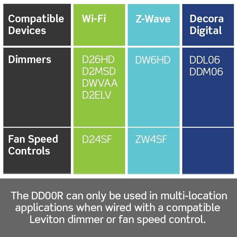 Control light(s) or ceiling fan(s) from another wall location Not for stand-alone use, requires primary dimmer or fan control For use in 3-way and multi-way applications only The Decora Smart Wired Dimmer Companion is designed for use in 3-way and multi-way applications in up to 4 additional locations so multiple devices can control the same light fixture or ceiling fan. The Wired Dimmer Companion requires a compatible Leviton Decora Smart or Decora Digital dimmer or fan speed control to function. It aesthetically matches Decora Smart and Decora Digital dimmers and fan speed controls, provides intuitive operation with digital circuitry and soft fade on/fade off. It is compatible with Leviton Decora standard and screwless wallplates (sold separately). Dual ... SuperMotor Decora Smart Dimmer Switch Companion for Multi-Location Dimming w/Locator LED,12 Control light(s) or ceiling fan(s) from another wall location Not for stand-alone use, requires primary dimmer or fan control For use in 3-way and multi-way applications only The Decora Smart Wired Dimmer Companion is designed for use in 3-way and multi-way applications in up to 4 additional locations so multiple devices can control the same light fixture or ceiling fan. The Wired Dimmer Companion requires a compatible Leviton Decora Smart or Decora Digital dimmer or fan speed control to function. It aesthetically matches Decora Smart and Decora Digital dimmers and fan speed controls, provides intuitive operation with digital circuitry and soft fade on/fade off. It is compatible with Leviton Decora standard and screwless wallplates (sold separately). Dual voltage, a neutral wire is required for installation. White face assembled on device with ivory and light almond faceplates included. Change the color of the companion at any time by ordering a new faceplate (DDKIT) in white, ivory, light almond, gray, black and brown color options. CONTROL YOUR LIGHT(S) OR CEILING FAN(S) FROM ANOTHER WALL LOCATION IN YOUR HOME - for use in multi-location applications with a compatible primary Decora Smart or Decora Digital dimmer or fan speed control PROVIDES THE ACCESS YOU NEED EXACTLY WHERE YOU NEED IT - perfect for the top or bottom of staircases, long hallways or large rooms with multiple entrances MATCHES THE LOOK AND FUNCTIONALITY OF YOUR DIMMER OR FAN CONTROL - its stylish look matches the primary dimmer or fan speed control for a seamless appearance and allows the user to turn the light or fan on and off or change the brightness or fan speed FIND THE SWITCH IN THE DARK - The LED locator light illuminates when the light or ceiling fan is off making it easy to locate on the wall when the room is dark COMPLEMENT YOUR DECOR? - change the color at any time with a new faceplate (DDKIT), available in white, ivory, light almond, gray, black and brown EASY INSTALLATION - replaces the existing 3-way switch, a neutral wire is required for installation NOT A STAND-ALONE DEVICE - the DD00R requires a primary Leviton Decora Smart or Decora Digital dimmer or fan speed control to function Click here to shop more Leviton products Captain Code 2023 NEC Code Changes Shop all of Leviton's Smart Products here Amperage (A):0 A|Color Family:White|Color/Finish:White, Ivory, Light Almond|Commercial/Residential:Residential|Compatible Bulb Type:CFL,Halogen,Incandescent,LED|Device Style Type:Dimmer w/o Wall Plate|Dimmable Capability:Dimmable|Dimmer Type:Rocker|Durability:Not Applicable|Electrical Features:Indicator Light|Finish Type:Matte|Function Type:3-Way|Included:No Additional Items Included|Indoor/Outdoor:Indoor|Material:PVC|Maximum Amperage (A):0 A|Mounting Type:In-Wall|Number of Poles:Single|Number of Switches:One|Package Quantity:1|Power Options:Hardwired|Rating:General Purpose|Remote Access:Remote Access|Requires Hub?:No Hub Required|Smart Home:Smart Home Enabled|Smart Home Protocol:Bluetooth|Switch Depth (in.):4.438 in|Switch Height (in.):2.813 in|Switch Style:Slide|Switch Width (in.):2.5 in|Voice Control Hub Required:No Voice Control|Voltage:120 volt|Voltage (V):120 V|Wall Plate Configuration:Dimmer|Wattage (W):0 W|Wattage Equivalence:0|Works With:Proprietary App|Certifications and Listings:CSA Certified|Manufacturer Warranty:5-Year Limited Item Specifics UPC 078477728536 MPN 001-DD00R-DLZ Brand Leviton Type Dimmers Payment If you do not have a PayPal account, to get started and buy your first item with us is very easy. Simply click on the 'Buy It Now' button and follow the eBay checkout steps. Select PayPal as the payment method you then will be given the chance to enter your card details in to PayPal's secure checkout in order to pay for your order. Shipping 2. We provide three kinds of shipping for choice. Shipping way depend on delivery address. Returns If an unit is received defective, of course we take it back or replace it. If the unit is received as expected, we must charge for our expenses if you want to send it back. We have to charge for the work of handling, retesting and restocking. Contact Us Dear buyer, Thank you for visiting my store! Our warehouses are located in many regions around the United States. According to the customer's delivery address. Use USPS/UPS/DHL logistics transportation service. Prioritize the best quality logistics solutions to transport packages. Ensure package delivery time, At the same time. Have any after-sales problems, Feel free to contact us. At your service SuperMotor DESCRIPTION PAYMENT SHIPPING RETURN POLICY CONTACT US Shop Category Store Home Other Hot Item Sealed Ignition Lock Cylinder Switch w/2 Keys for Kia Soul 1.6L 2.0L 2010-2013 8 USD 49.49 3” Front 2” Rear Level Lift Kit Spacers Fit Ford Explorer 2002-2005 2WD 4WD USD 144.99 Sealed 5pcs Engine Motor&Trans Mount For Honda Odyssey LX/EX 3.5L V6 VTEC 2005 2 USD 121.80 24* Valve Lifters Tappet 5L1Z-6500A for FORD EXPLORER F-150 MUSTANG 4.6L V8 USD 82.99 Sealed Engine Motor&Transmission Mounts x6 For Honda Accord 3.0L 2003-2007 Auto USD 109.62 Excellent Delivery H
