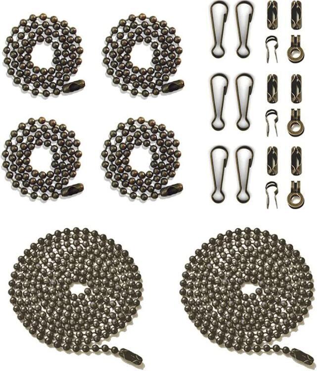 Specifications: Optional Color: Bronze, Silver,Black,Gold Length: approx. 9.84ft (3m) Diameter: approx. 0.12"(3mm) Features: 1. Each beaded ball chain extension can be cut to the desired length, easy to adjust. 2. Great to replace or extend ceiling fan chains, high ceiling light fixtures, ventilation or curtain pull chains. 3. Also, it is great for holding dog tags, pendants, tools or other small objects like nail clippers. Notes: * Due to the light and monitors effect, colors may be slightly different. * Please allow slight dimension difference due to different manual measurement.